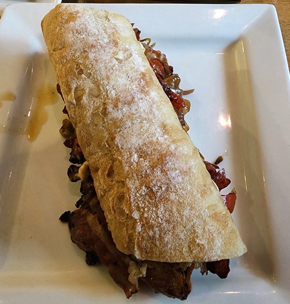[This is mine – the New Yorker, pastrami and stuff on a baguette . . . ]