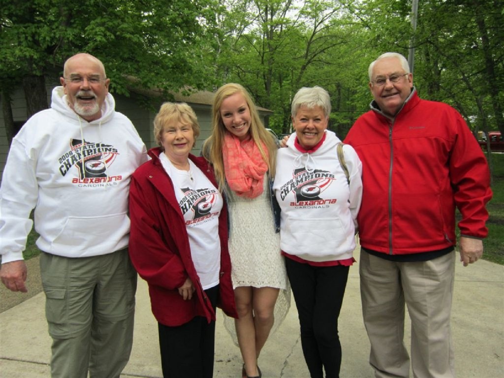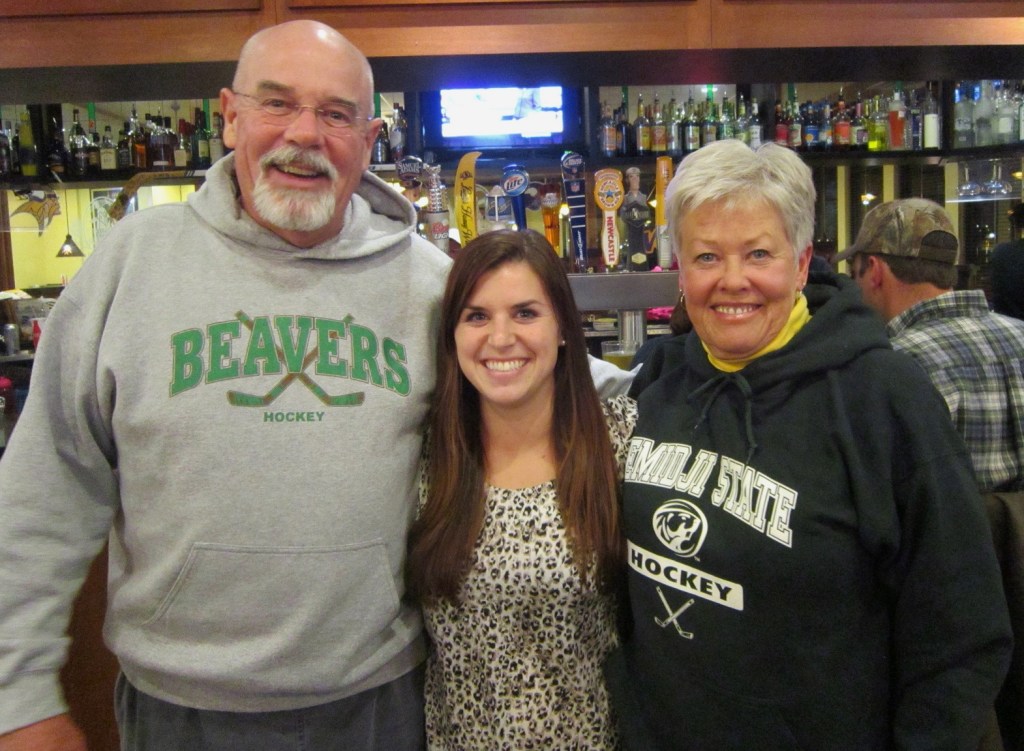 [Finally, at the Beavers’ game, joined by another former Alexandria Cardinal player, Beth Rindy, who was a defenseman a couple years before Abby . . . ]