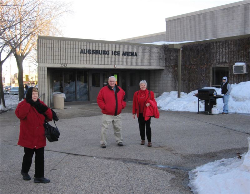 [Since we were in town, we went to see a women’s hockey game between Augsburg and Gustavus Adolphus. Both teams featured Alexandria alums . . .]