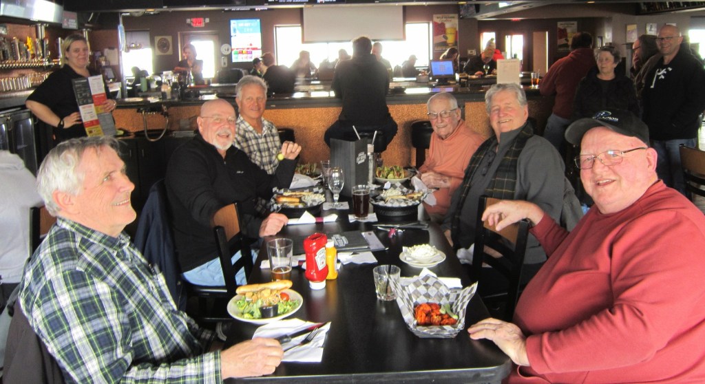 [The senior golf league guys who “stay behind”, i.e., don’t snowbird, at our annual Christmas get together at Arrowwood . . . ]