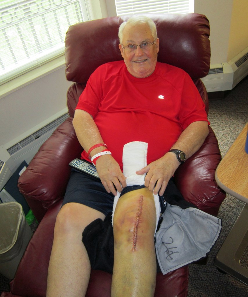 [Recently unearthed, Weakie when he became a member of the “zipper” club after knee replacement surgery (photo dated July 16, 2011) . . . ]