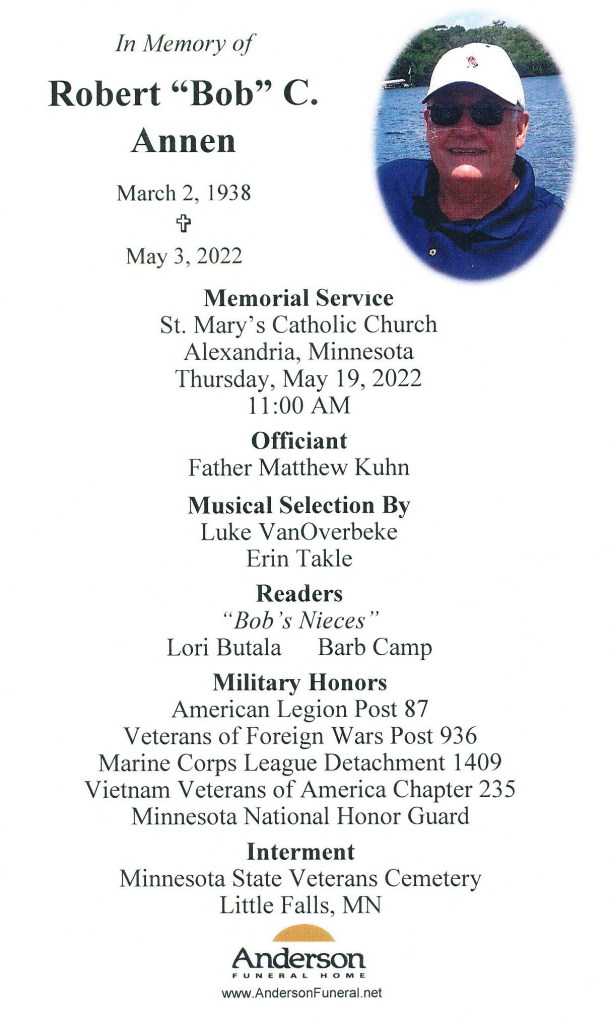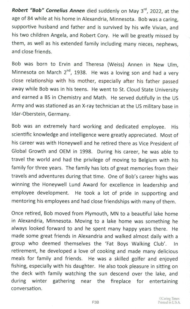 Thank you. Robert (Bob) Annen was his name. He grew up on a farm and went to the Catholic school there K – 12. He hasn’t lived there since he graduated from high school in ’55 or ’56. I hadn’t planned on an autobiography – my “auto” part was powered by fossil fuels . . .