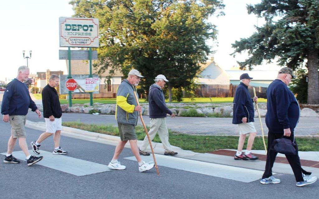 [This is when international stardom struck the boys. The Echo Press ran a full page story on the Fat Boys Walking Club. This photo and the three following were all taken by the Echo. How they were able to focus on us moving at speed is beyond me . . . ]