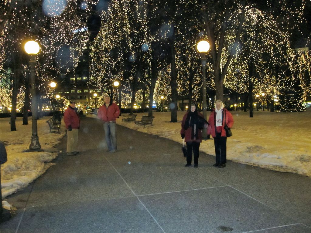 [My brother Cam joined us on a trip through Rice Park on the way to a girls state tournament hockey game. I have a dim memory (in general) of where we stayed when in St. Paul for tournaments – at one time the parking garage for our hotel was some blocks away and we got lost in the skywalks trying to find it . . . ]