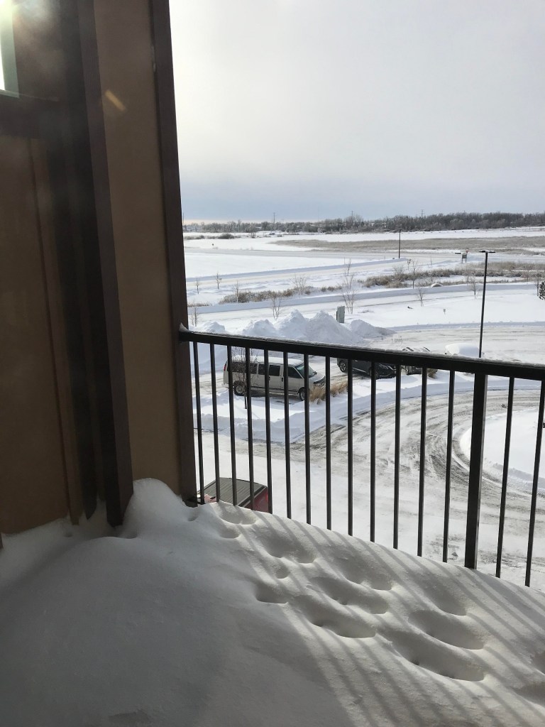 [Weakie and Viv and Shackie moved to Grand Arbor in the summer. Here’s the view from their balcony in winter . . . ]