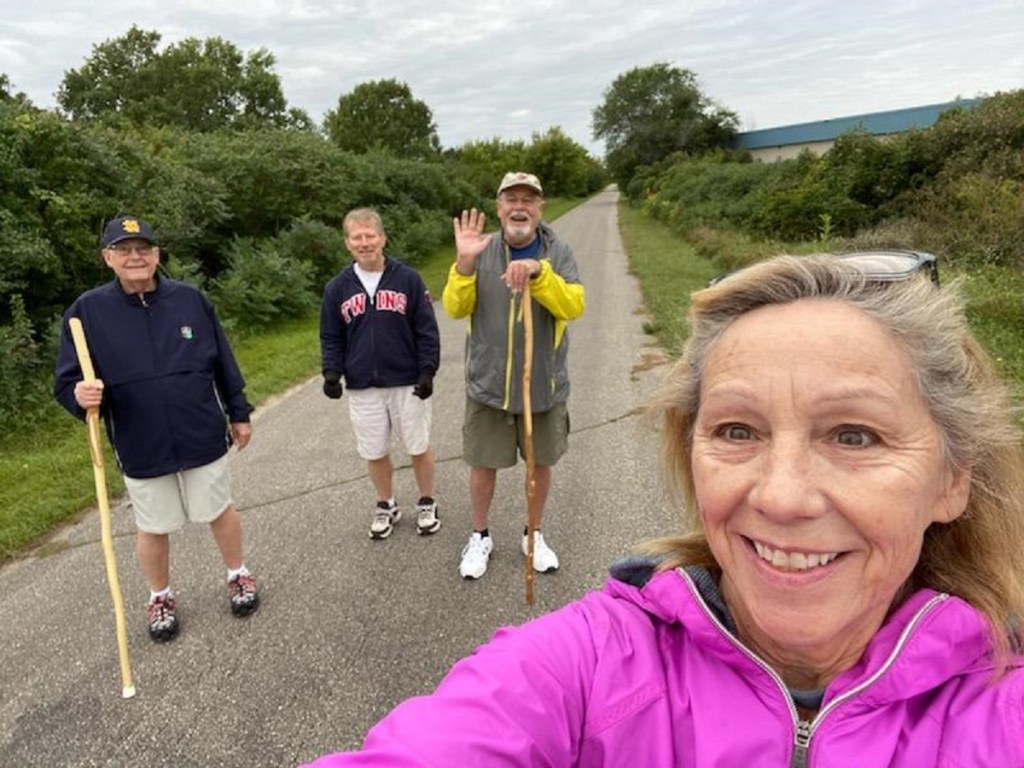 [Some days, like the early days, there was just the two of us on the morning walk. We were still taking the trail across County Road 22 in “those” days (two years ago?). As a group, we seldom cross Co. Rd. 22 anymore because you have to be pretty nimble to avoid the traffic . . . ]