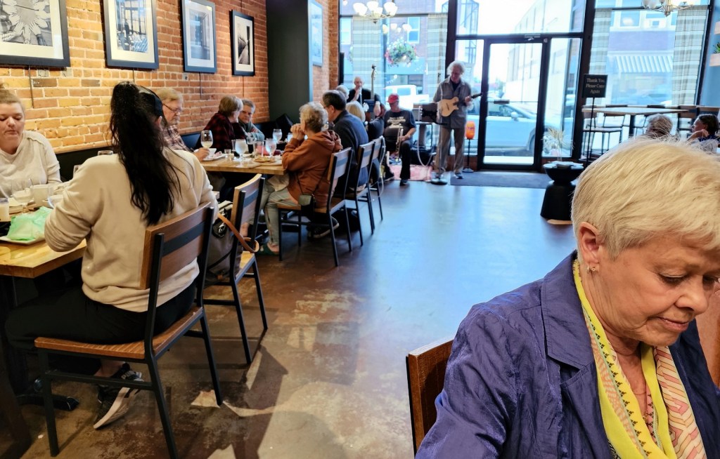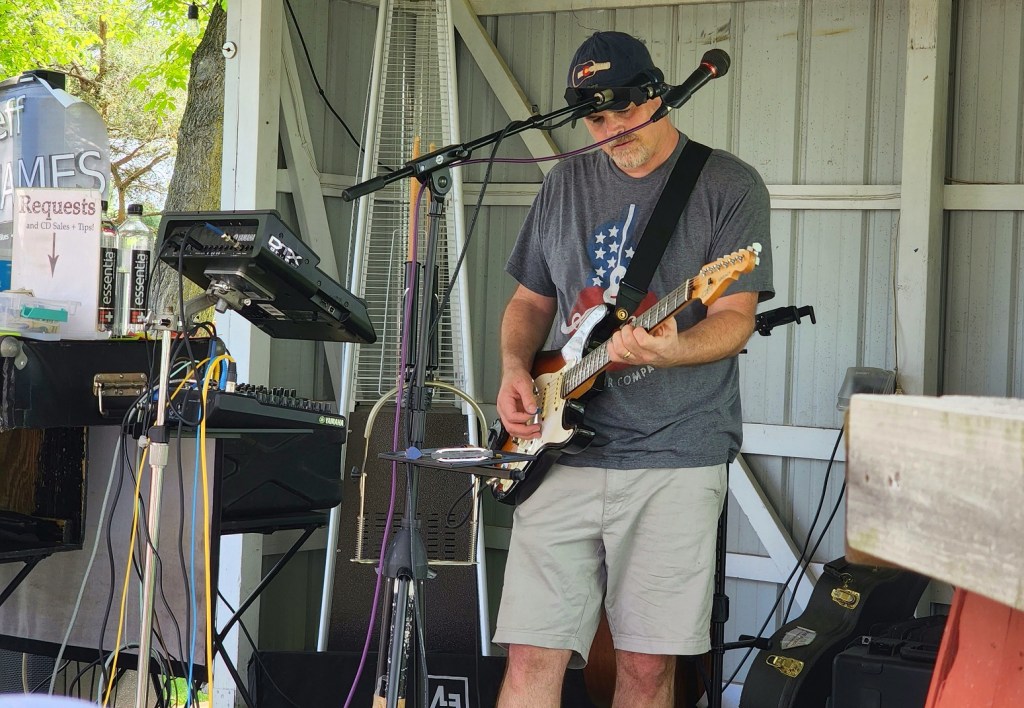 [It was every bit as beautiful a morning as was the previous afternoon. We delighted in the thought of sitting there all day. The Miltiches were followed on stage by the Robb Justice Band from 1 – 4:00 pm. Age and a change in weather prohibited us from sitting there for all six hours (though we did last for four) . . . ]