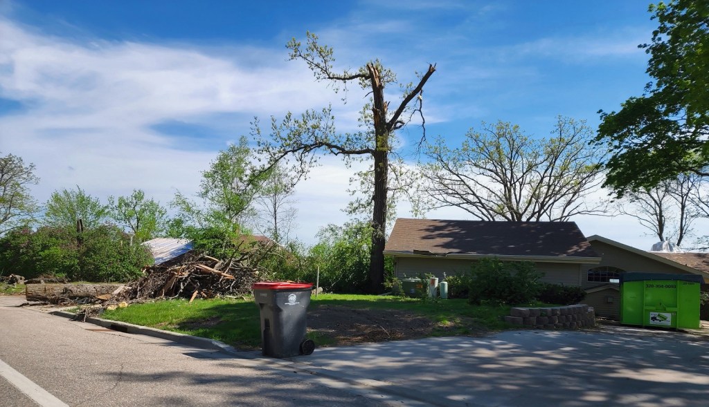 [On the drive home from the winery, the properties along the NW shore of Lake Darling reflect the recovery efforts from the tornado of May 12th . . . ]