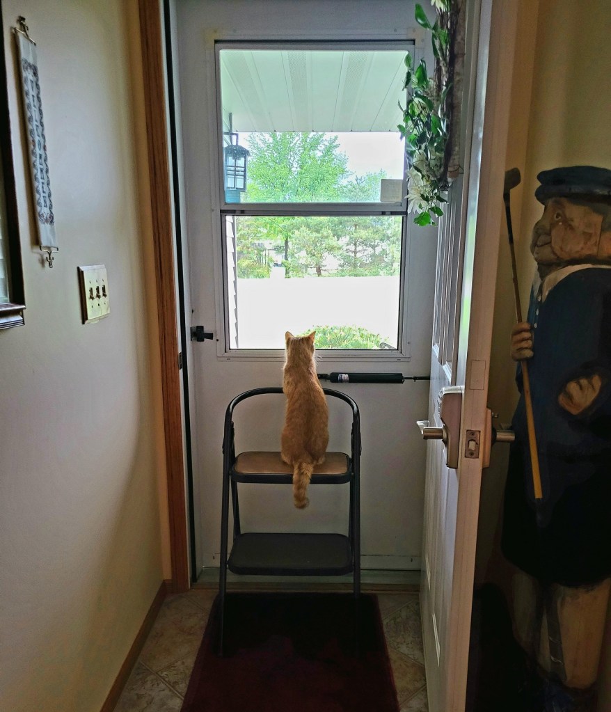 [Guinie keeps an eye on the outdoors on May 30, seemingly aware of what was to come later in that day . . . ]