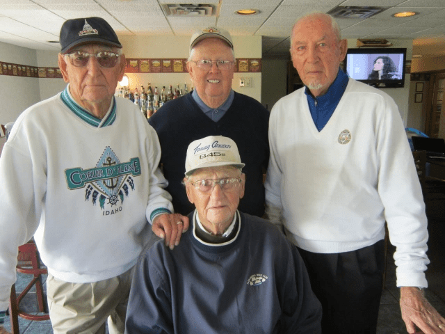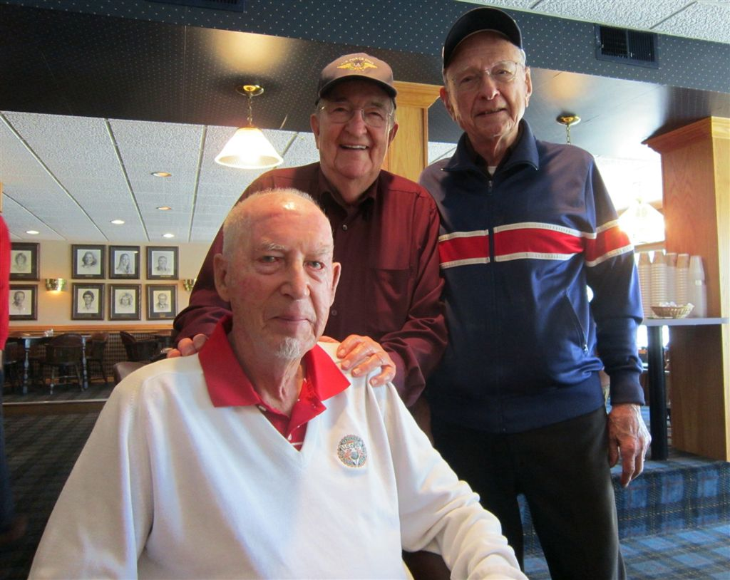 [Gordy, with Warren and Martin, a Senior Men’s team of players over 90 on June 12, 2012 . . . ]