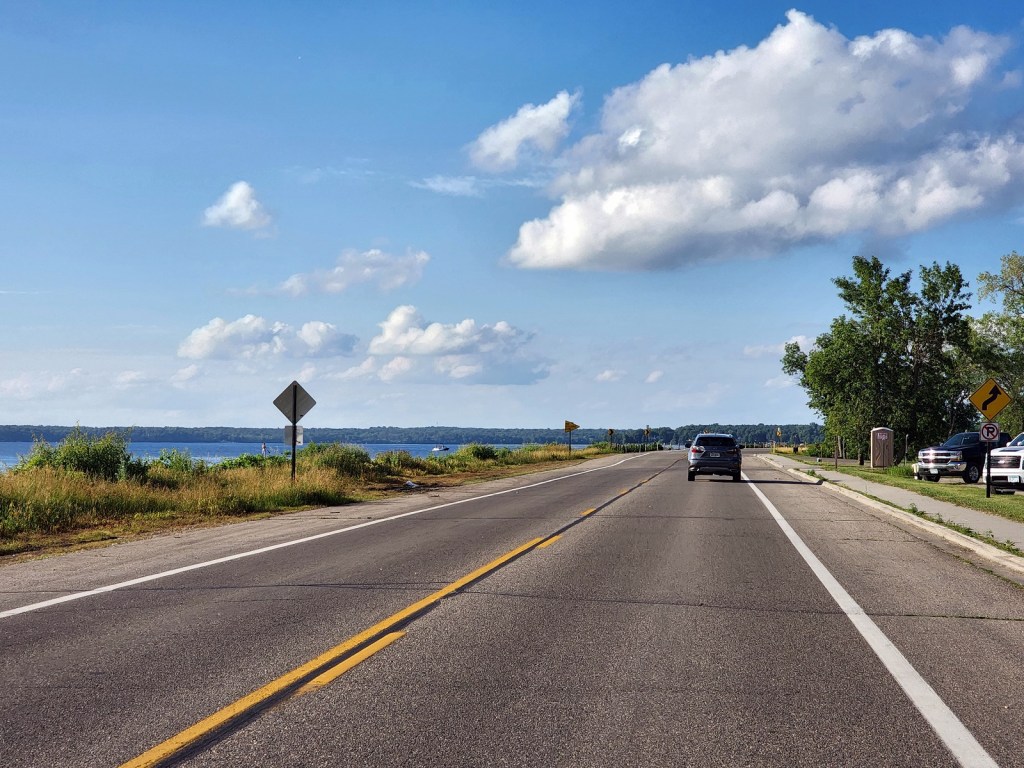 [Passing Rotary Beach on Lake Le Homme Dieu . . . ]