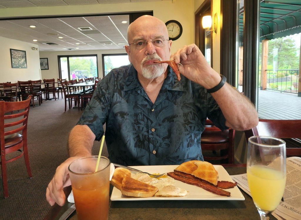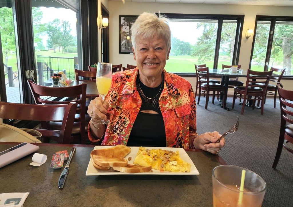 Reminder, the Alexandria Golf Club clubhouse is open to the public for fine dining. This morning the Super and I enjoyed a dearth of customers but with a plethora of ambience! ~ Me