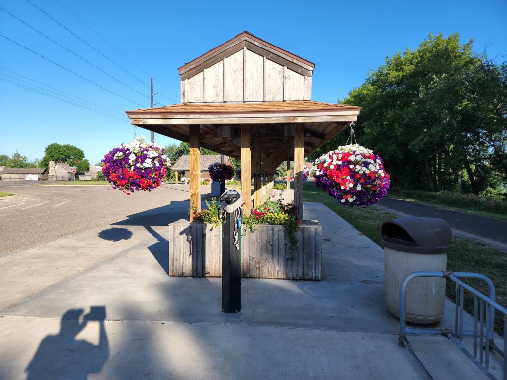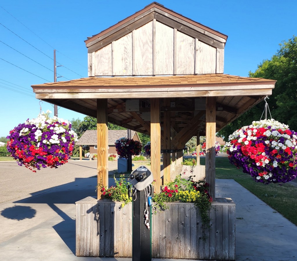 [The city’s flower baskets in Big Ole Park, where the Fat Boys begin their daily saunters . . . ]