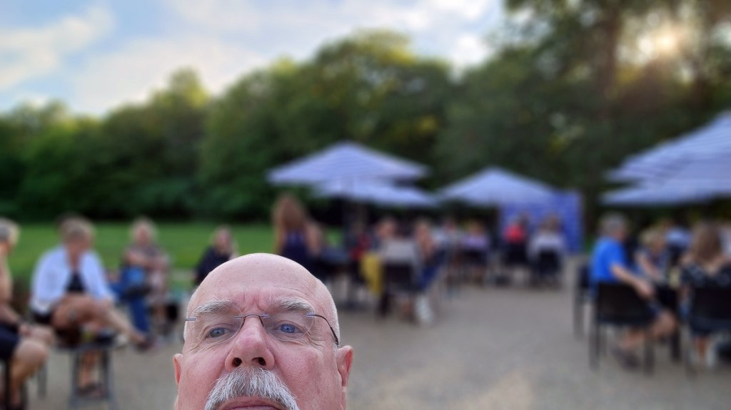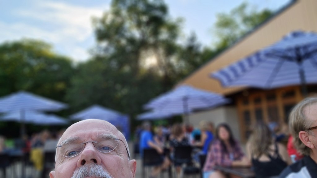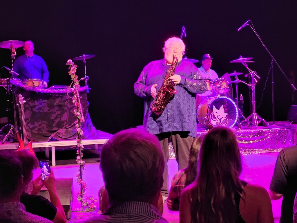 [Jerome Newsom reprised the role of Morris Day performing The Bird from the movie Purple Rain (canned photo). We “ran into” him in the theatre parking lot. The Super wondered how he got such a great spot. I reminded that her was a member of the band, an assumption on my part . . . ]