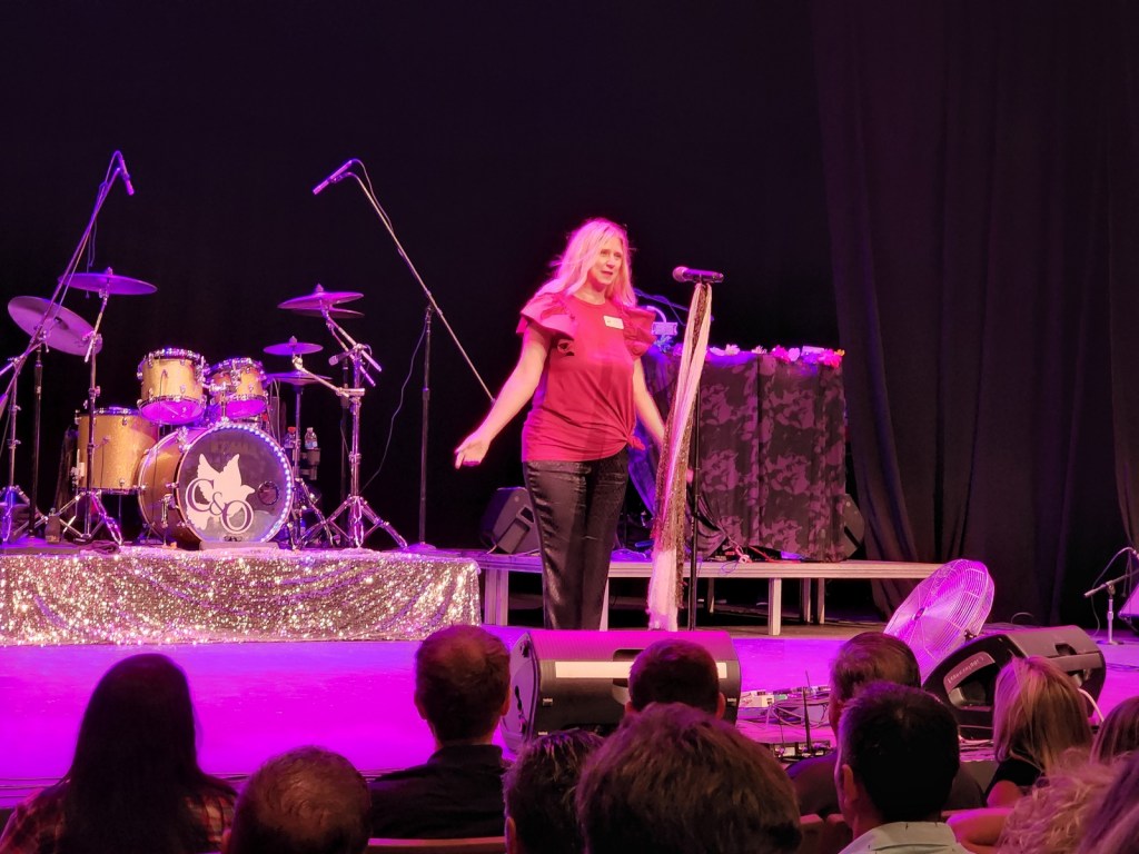 [TLHD’s executive director Nicole Mulder greets the attending masses . . . ]