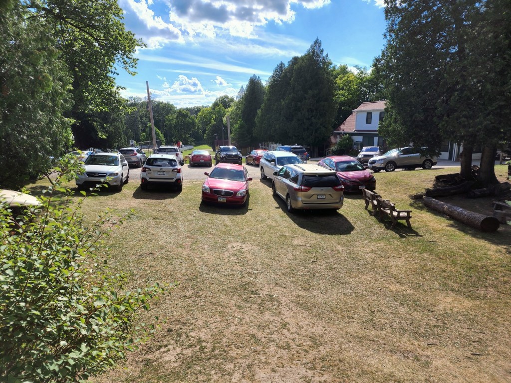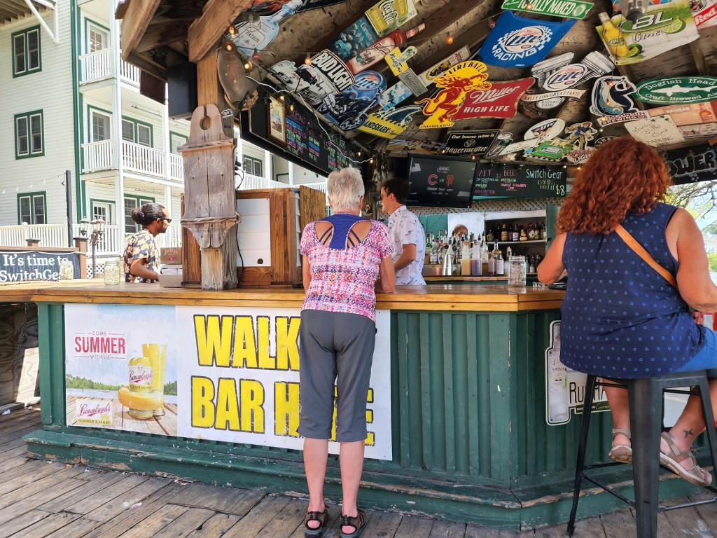 [We left the museum in Sheboygan for our next stop at the Tiki Bar in Elkhart Lake. The Super is purchasing adult beverages for our group. This is always our last stop before checking into camp at 1:00 on Sunday . . . ]
