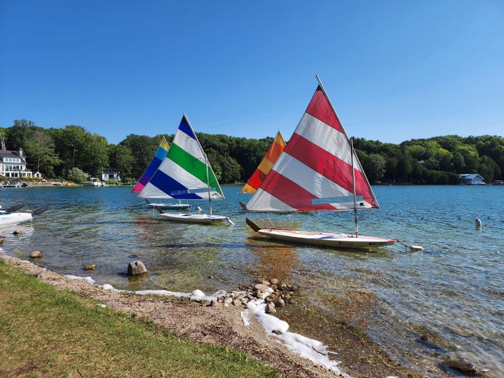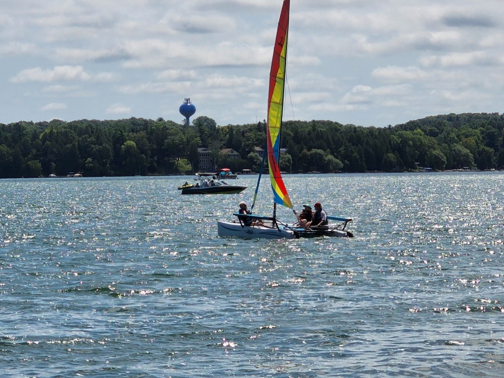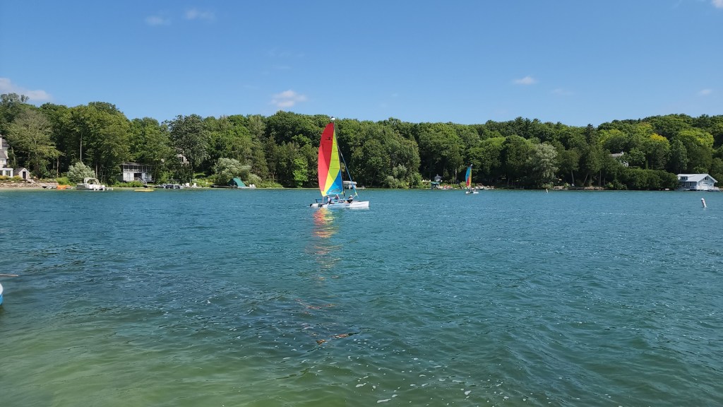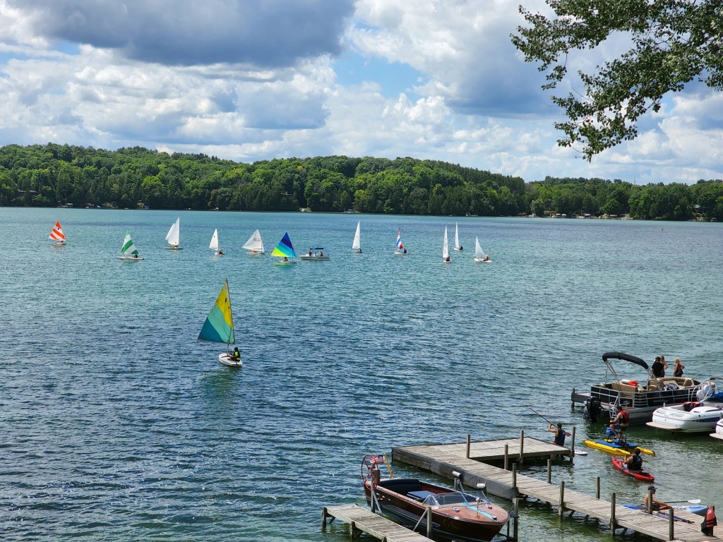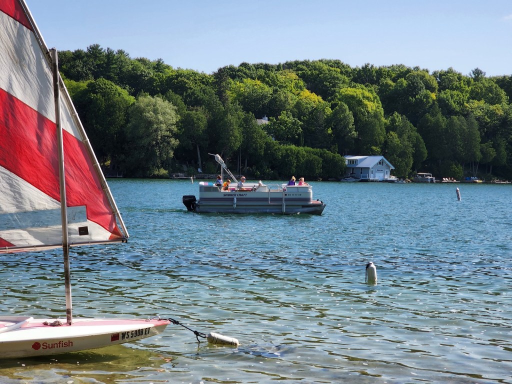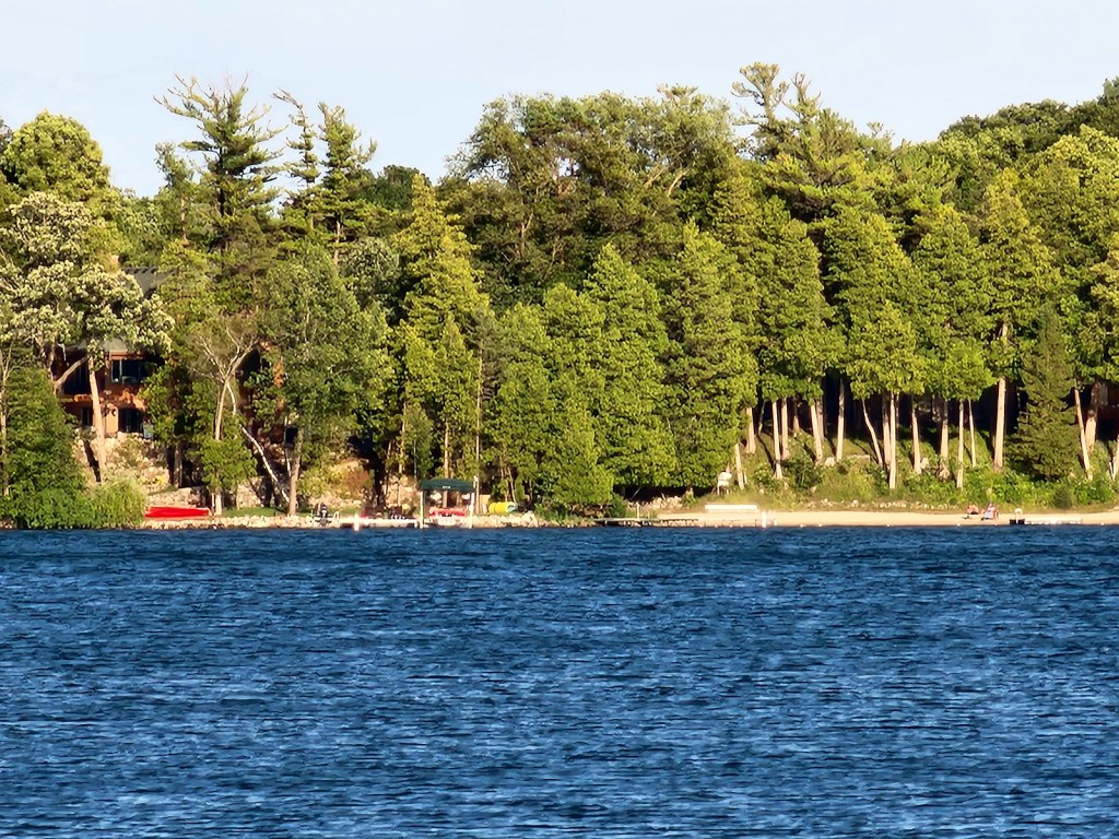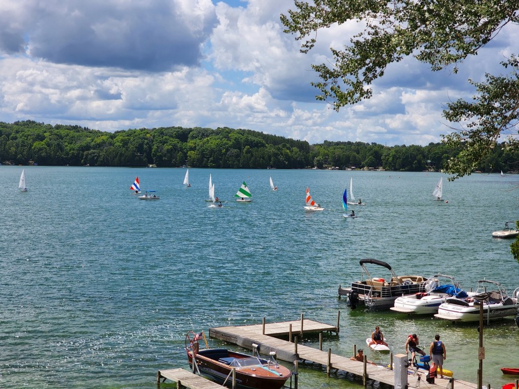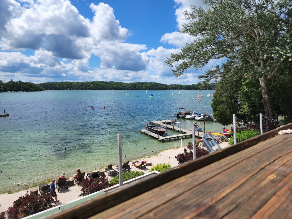 [The view of Elkhart Lake from the Tiki Bar. Camp Brosius is at the exact opposite side of the lake from here . . . ]