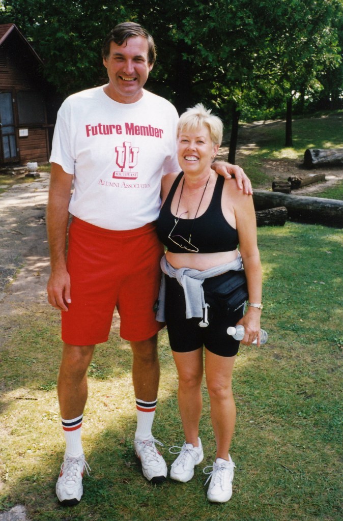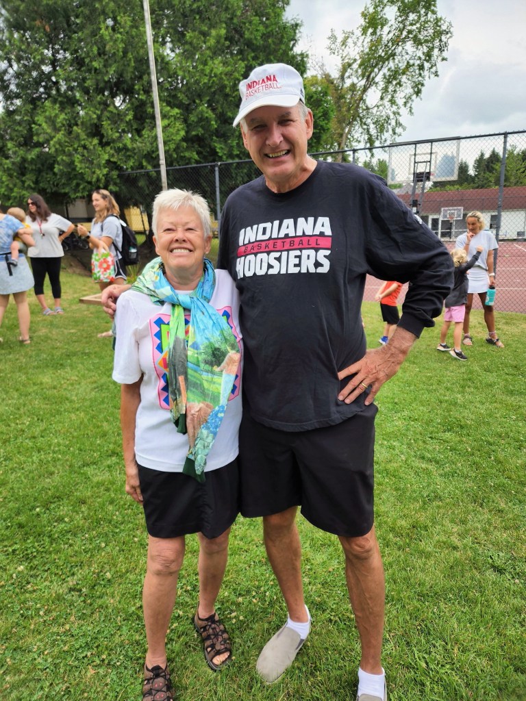 [The photos are of Ruthie with her new close personal friend, John Laskowski – the first taken at camp in 2000, the latter last week. John played for the Indiana Hoosiers from 1971 to 1975 as the team’s 6th man – he was known as the Super Sub who averaged 11 points a game in his IU career. In his career the Hoosiers never lost a home game. Similarly, in Ruthie’s IU career from 1963 to 1967 she never missed a home game!]