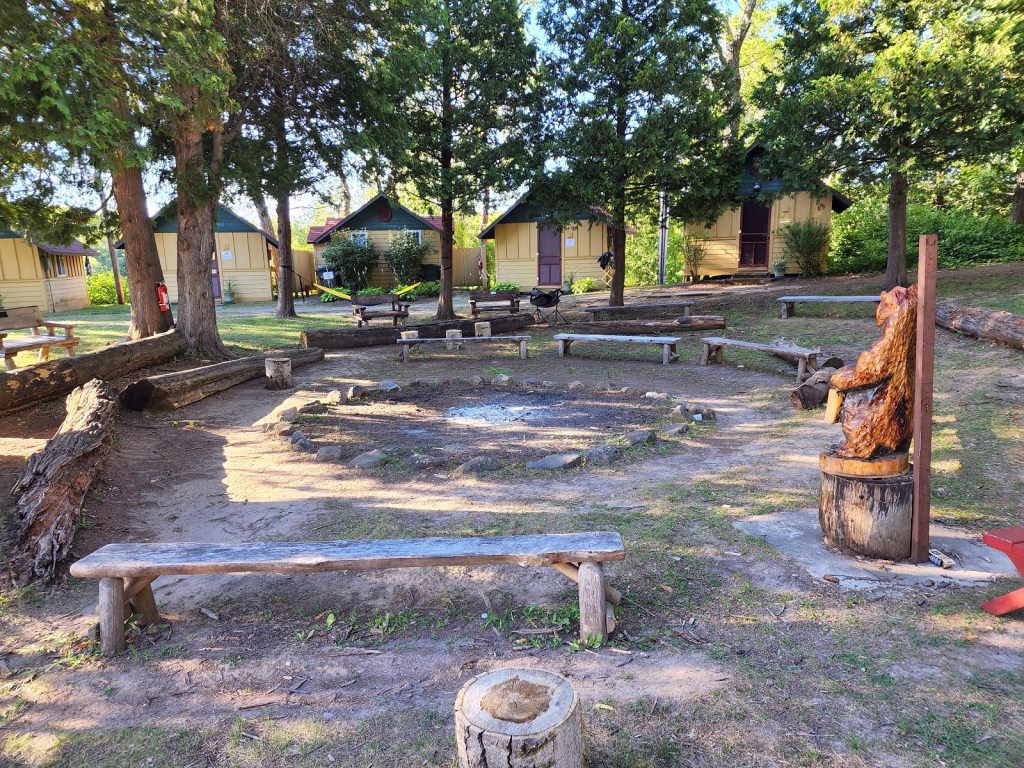 [The two-year absence of campers allowed for some serious makeovers – like the patio which was suffering the death pangs of crumbling flagstones. The building is the mess hall where we received three meals a day, almost all eaten outside in the beautiful weather . . . ]