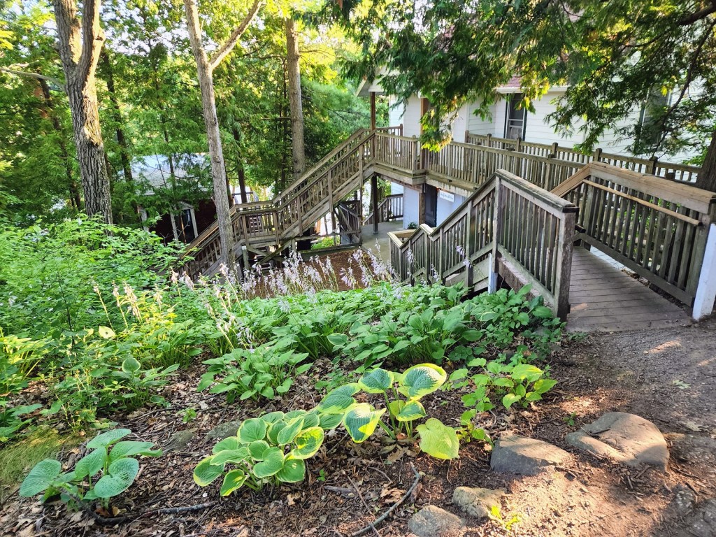 [As older people, we rent a golf cart for the week so don’t have to deal with the stairways to heaven before and after the three meals a day and any other time you want to visit the lake front and can survive the driving habits of the Super . . . ]