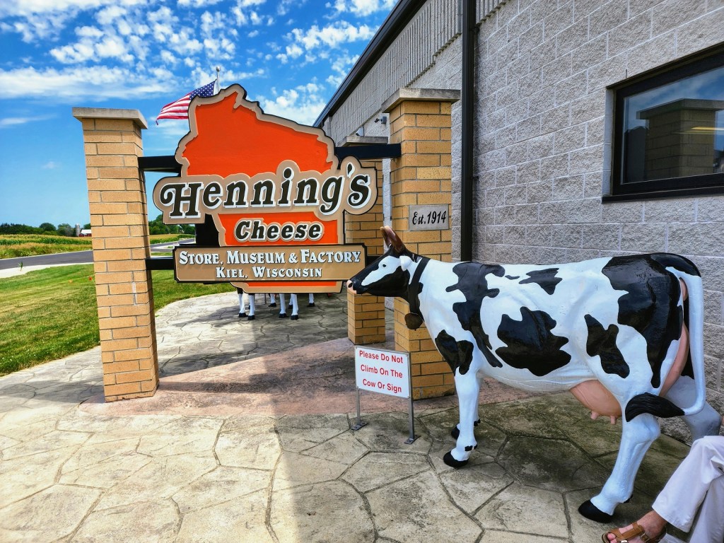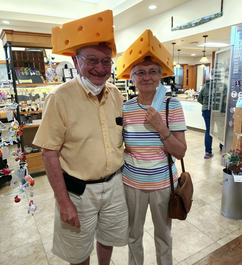 [This was a road trip to Henning’s Cheese in Kiel, Wisconsin. Ed and Elke display the proper headgear for the occasion . . . ]