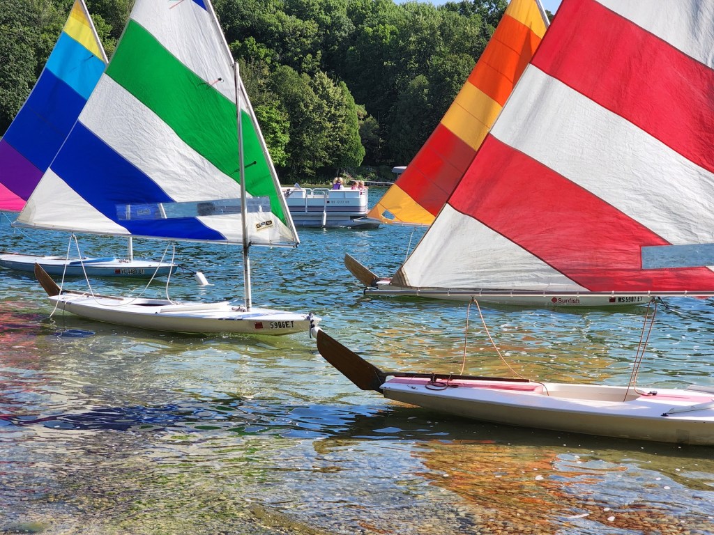[All the little chidrun are going for a pontoon ride – or why camp works of adults . . . ]
