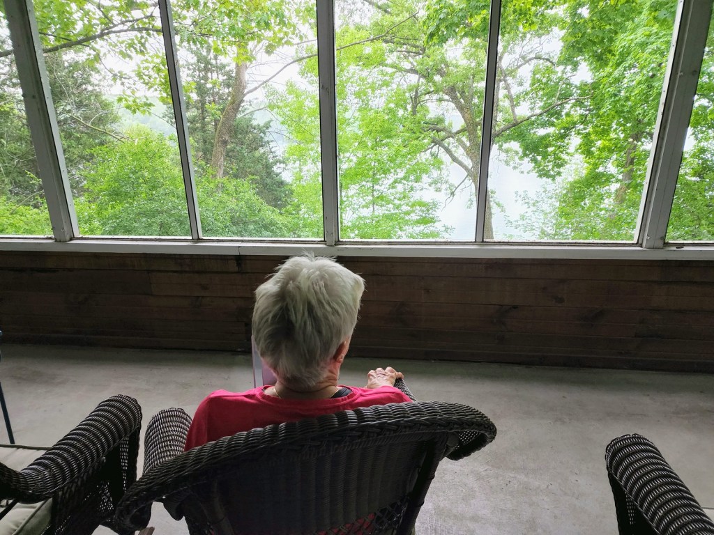 [It’s nice here in the shade – we can just sit and visit, read a book, cool our heels . . . ]