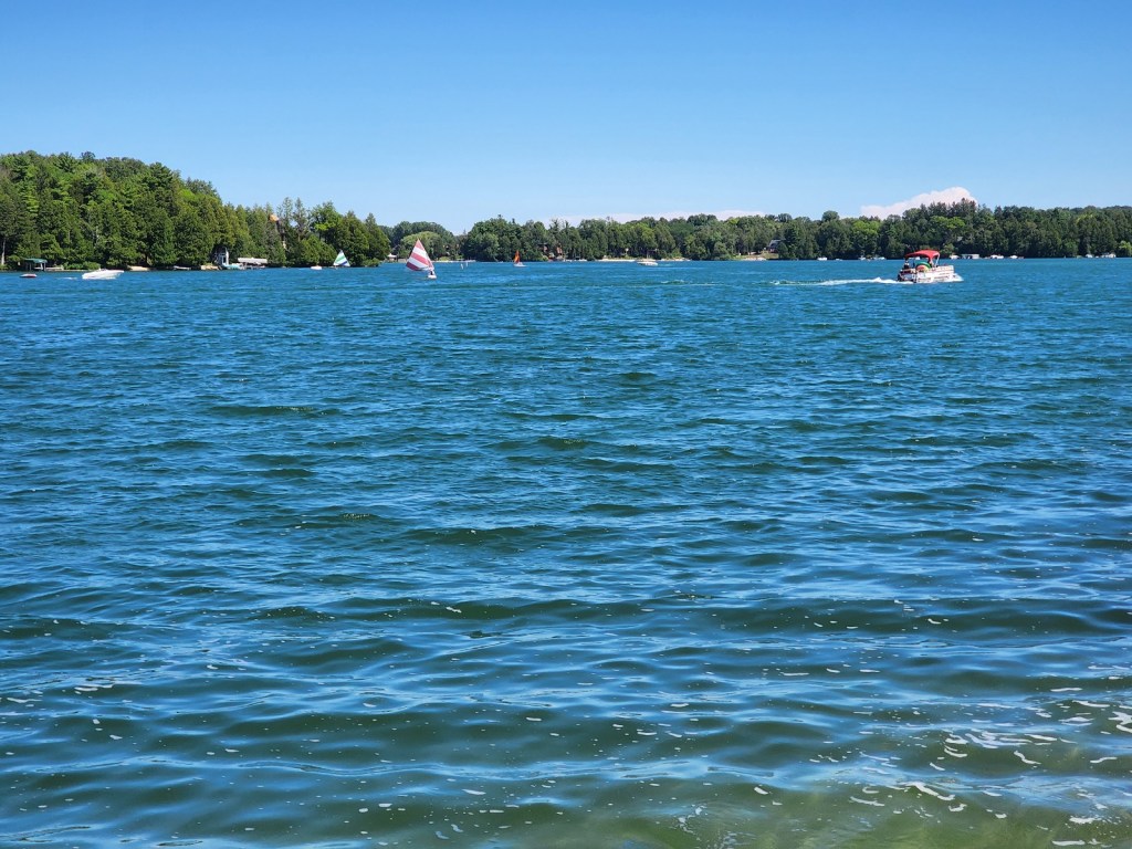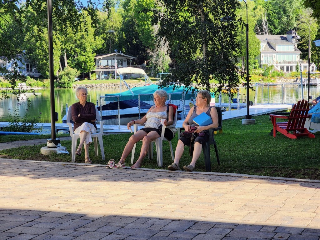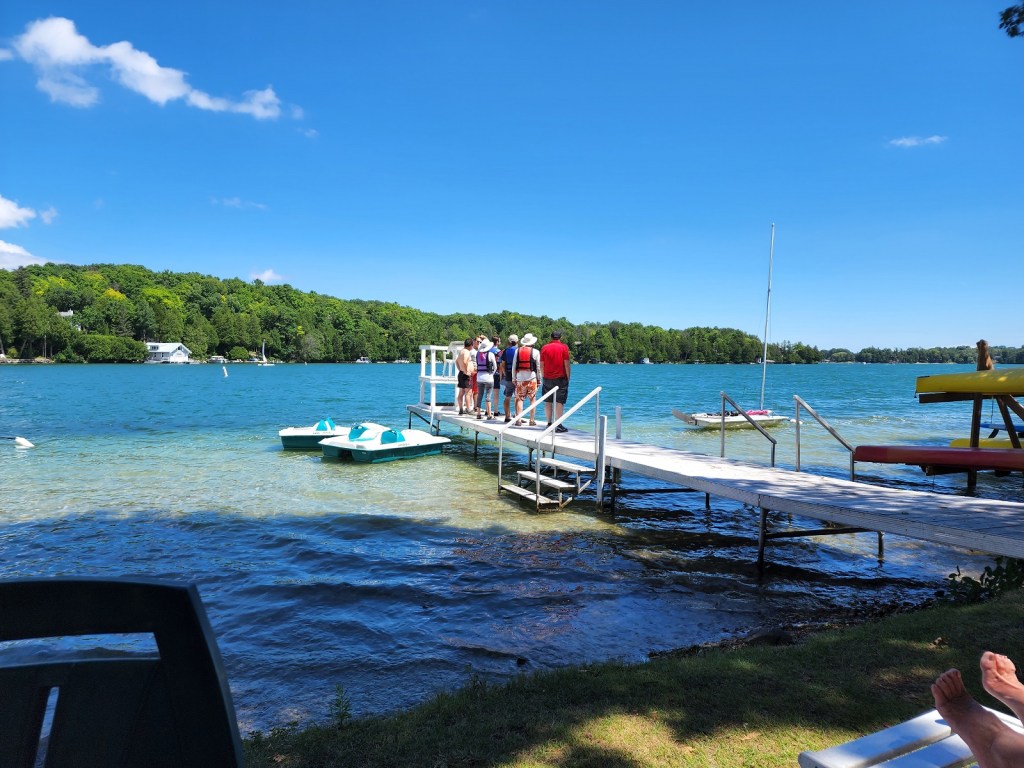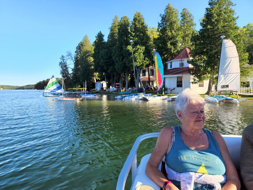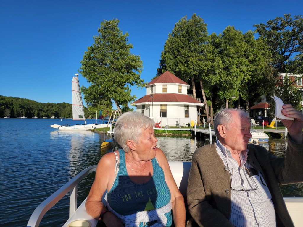 [The Super and Ed enjoying a weekly highlight – a pontoon ride around the lake after dinner. We got the early shift this year meaning we couldn’t come home with the sunset . . . ]