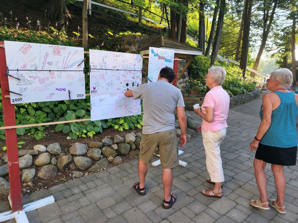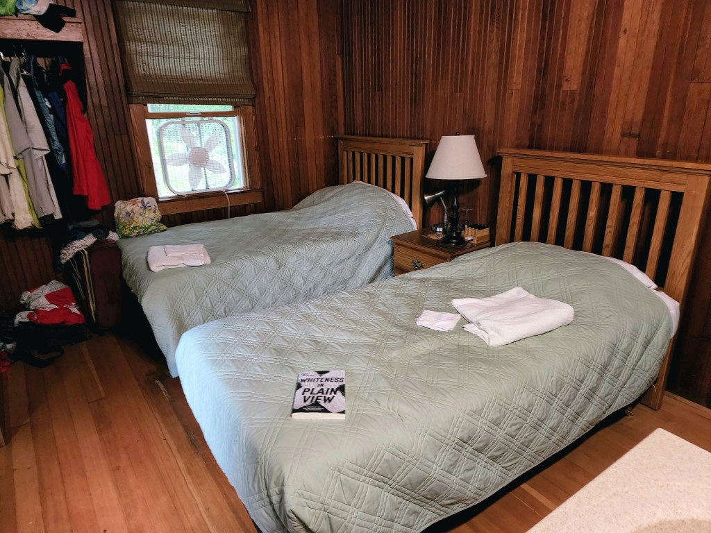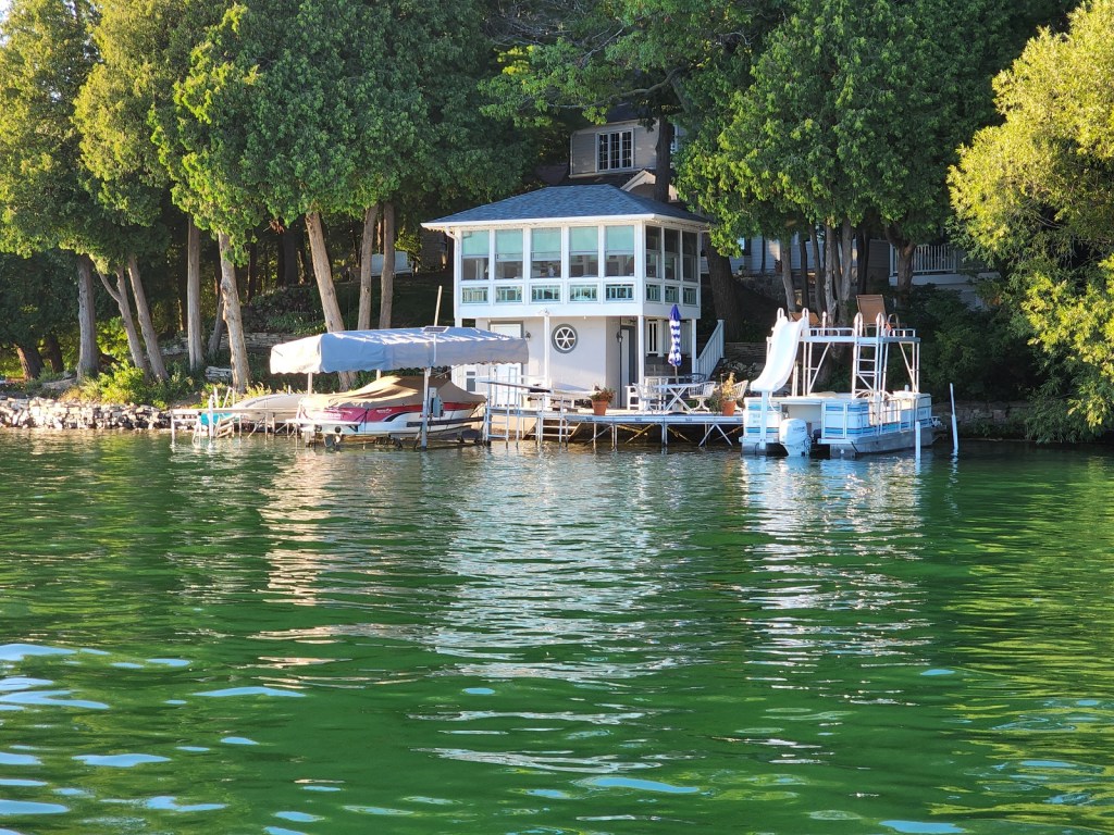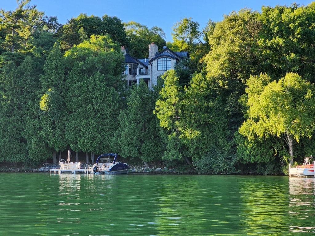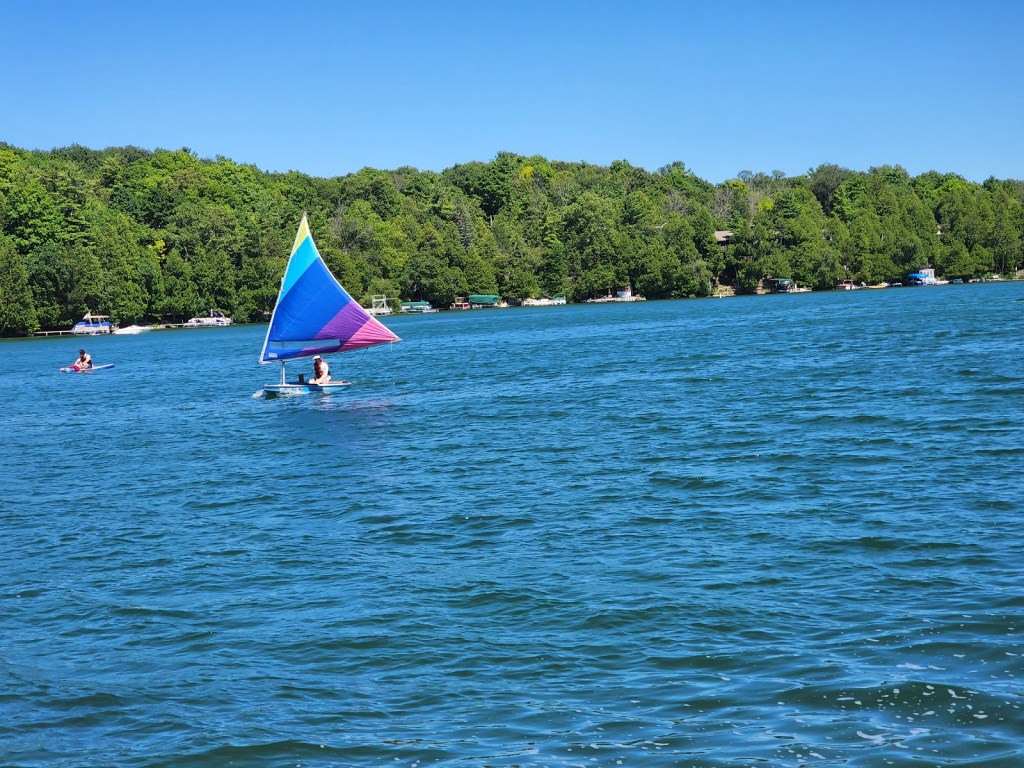 [The Super and Ed enjoying a weekly highlight – a pontoon ride around the lake after dinner. We got the early shift this year meaning we couldn’t come home with the sunset . . . ]