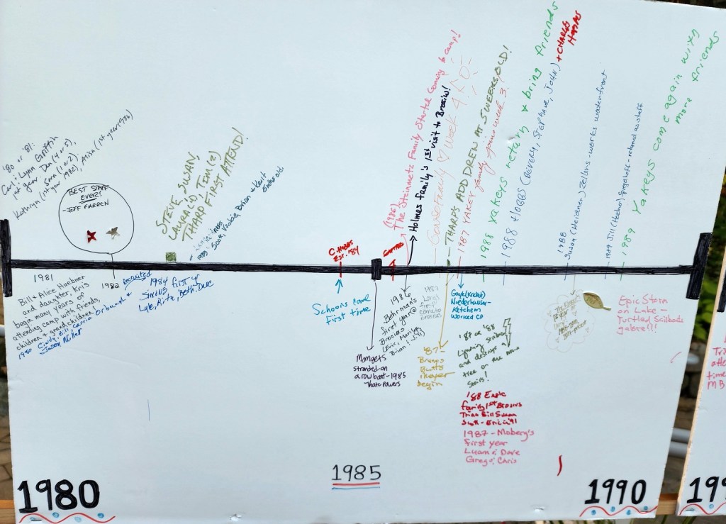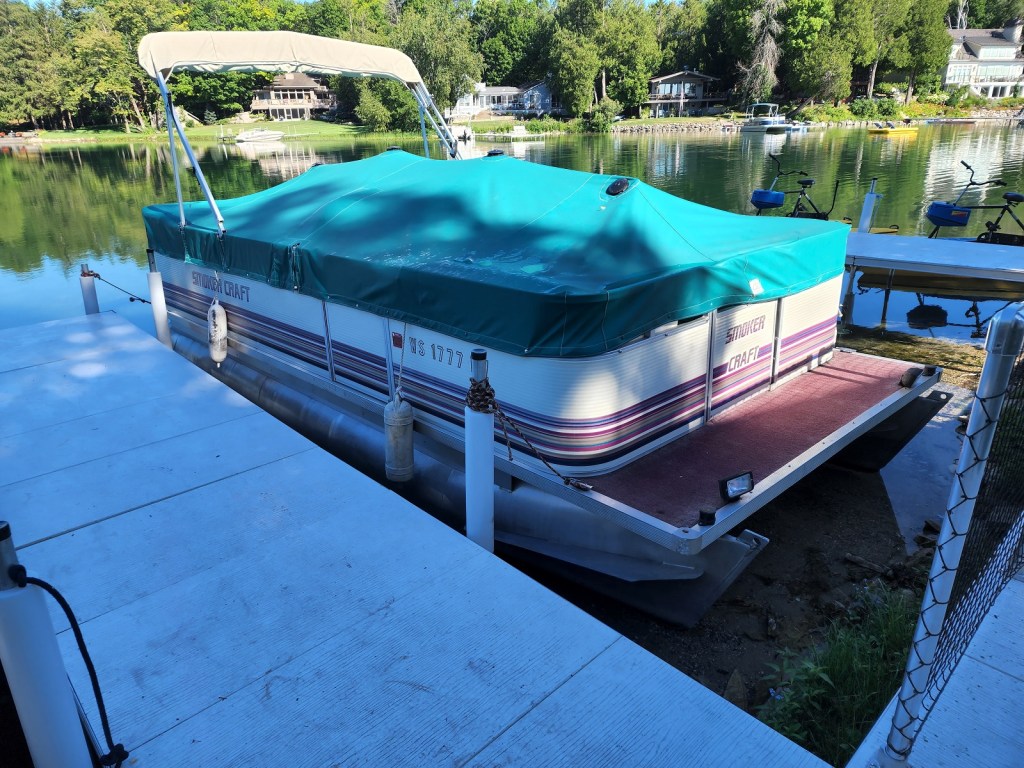[The camp’s Smoker Craft pontoon – Rita’s best friend and a longtime Brosius camper, Cindy, was in the Smoker lineage . . . ]