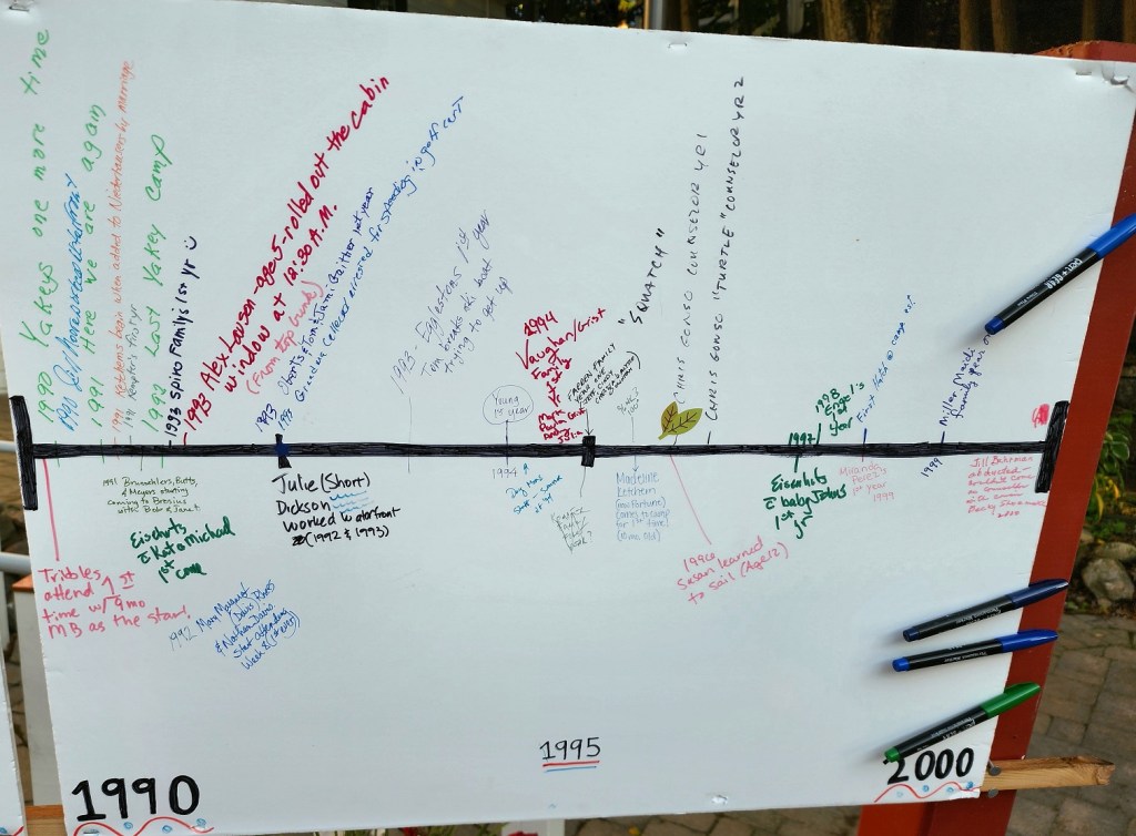 [Nephew Chris signs the board with his mom and Ruthie checking his spelling. I somehow had never noticed that he’s left-handed?]