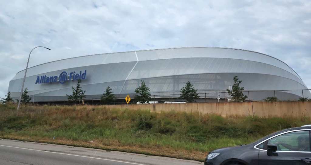 [Allianz Field, home of Minnesota United FC, a Major League Soccer team in North America, as we rolled through St. Paul on I-94 on the drive home . . . ]