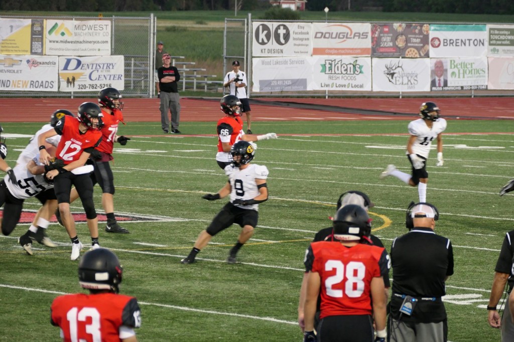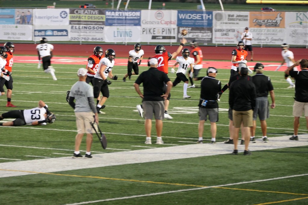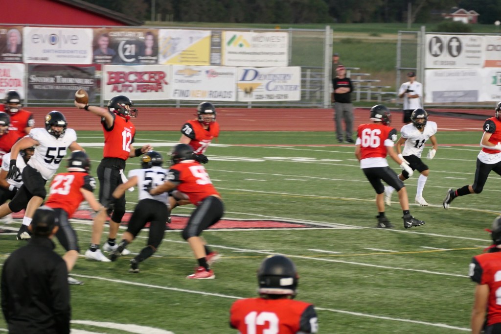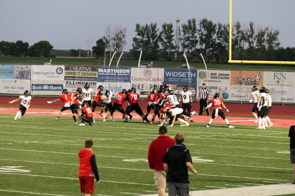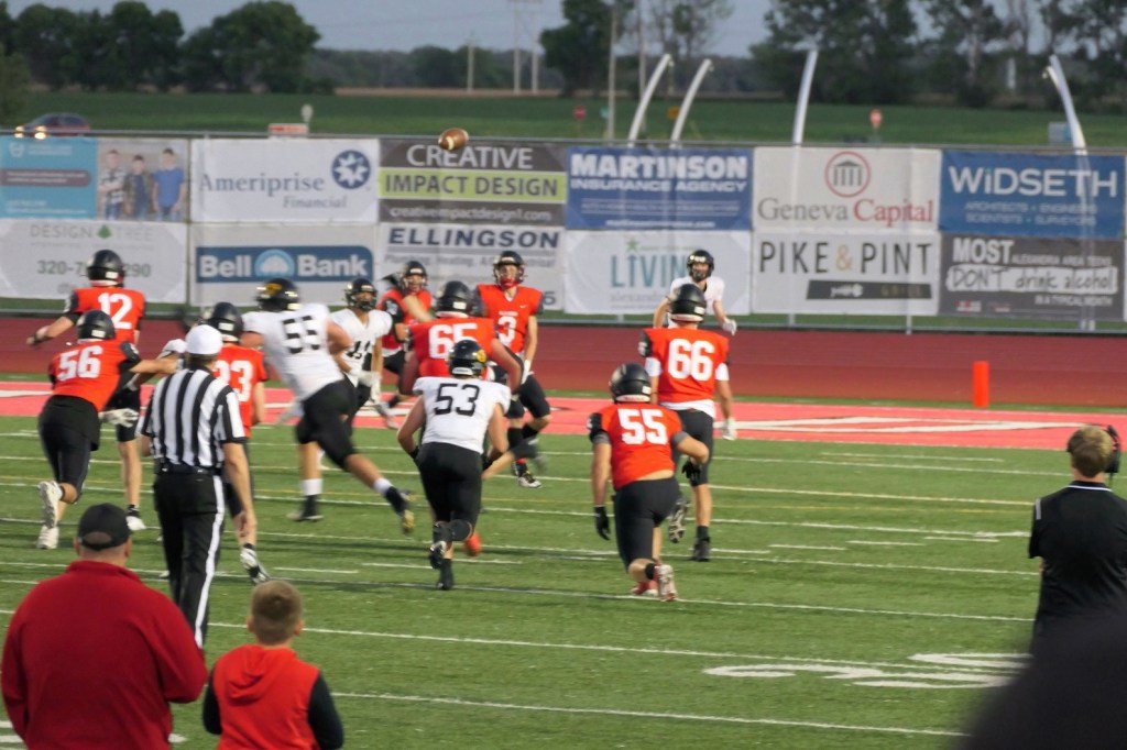 [Stuff happens. The first game of the season for the Cards hosted Hutchinson, the defending state champions. The Cardinals graduated all their playmakers from last year. New players at a lot of positions, including a sophomore quarterback starting his first varsity game. This is the first play of the game, an incomplete pass that was then ruled a lateral and recovered by Hutchinson, who scored a couple runs later. The Cardinals had a good kickoff return, but went 3 and out. The snap to the punter went over his head and he fell on it inside the 10 yard line. Hutchinson again scored and led 16-0 before the Cardinals even had one positive yardage pay. In the immortal words of Kurt Vonnegut, Jr., “So it goes.”]