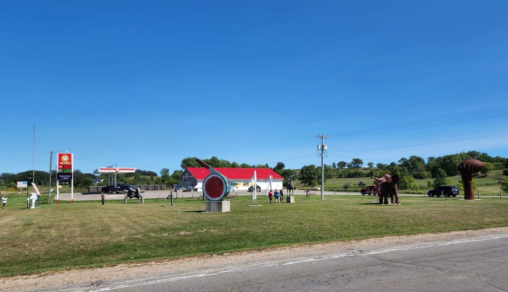 [Vining’s, population 41, famous sculpture garden . . . ]