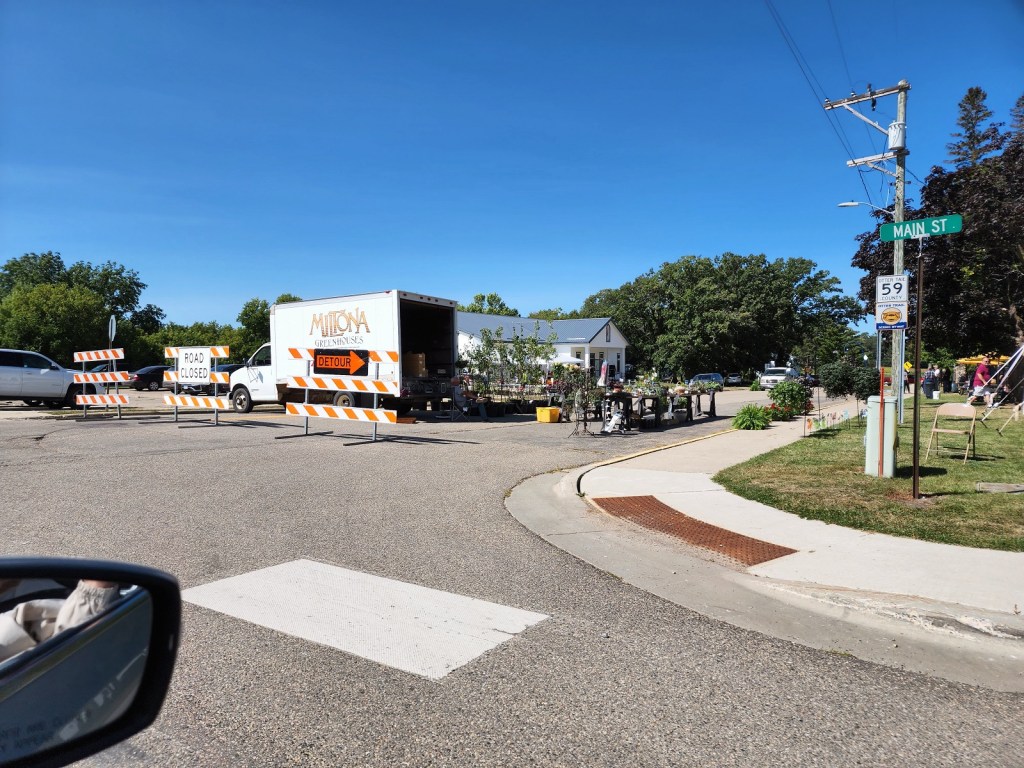 [This is Urbank, population 52. On the way to Battle Lake, the whole town was blocked off. It must have been Urbank Days, or something. Everybody in the whole county must have been there . . . ]