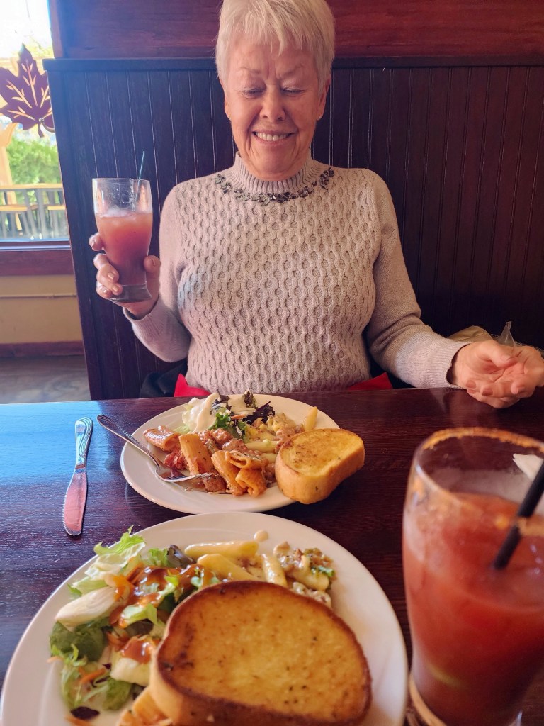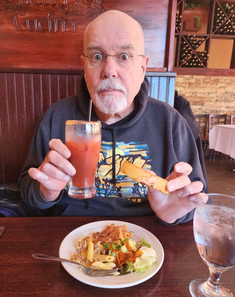 [The day’s special was a pasta buffet – with a deal on Bloody Marys . . . ]