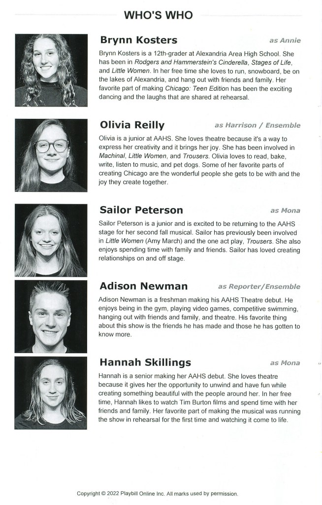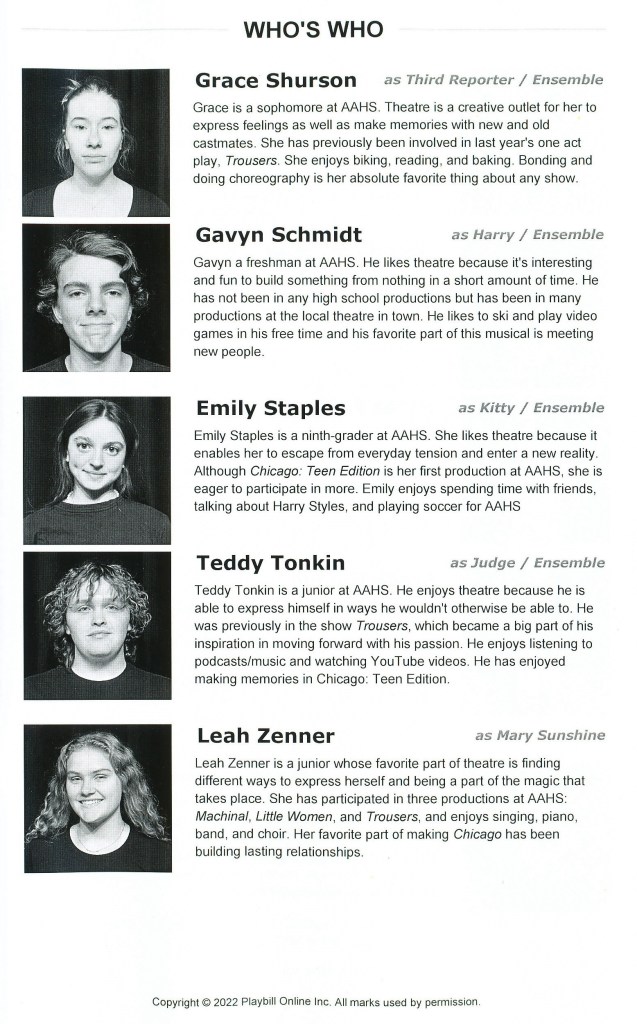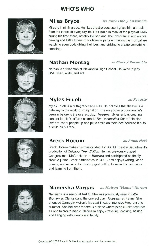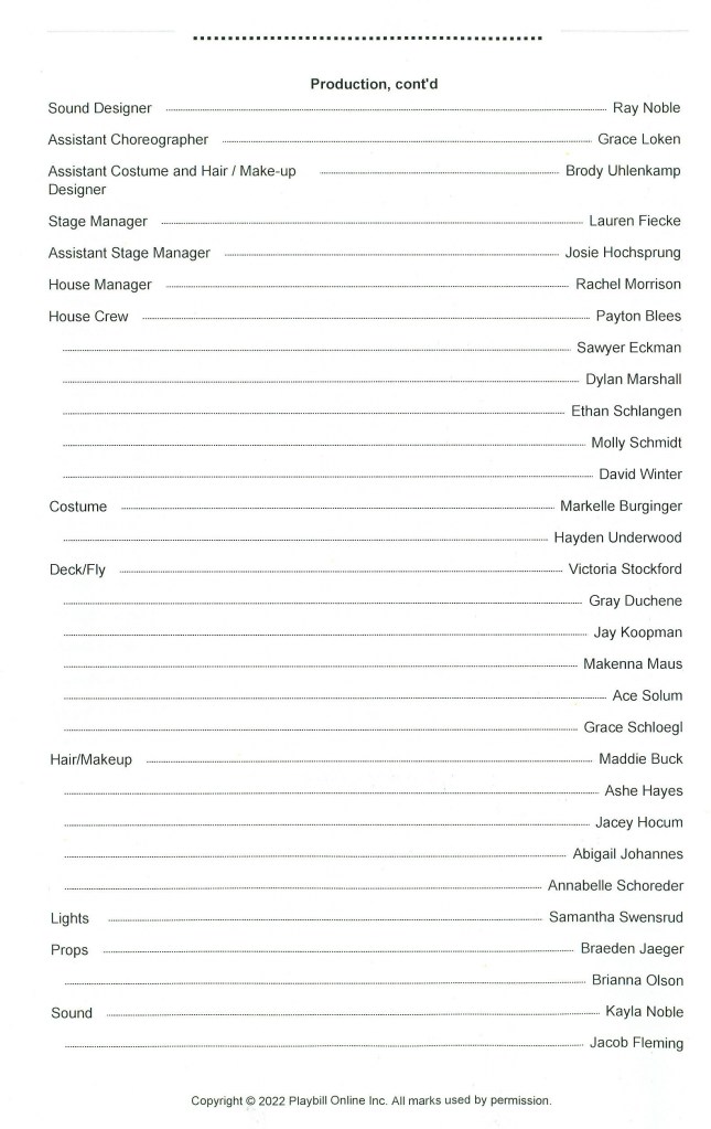 A high school production that came under assault by the local morality police. Fortunately each of the four performances drew wonderful crowds. I’d like to express my appreciation to the local denizens for doing such. And as usual the kids did not disappoint – they were terrific! ~ Me