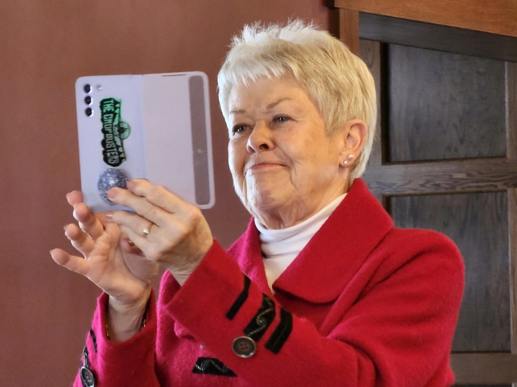 [The Super taking her “missing you at” Facebook photo of Elsa . . . ]