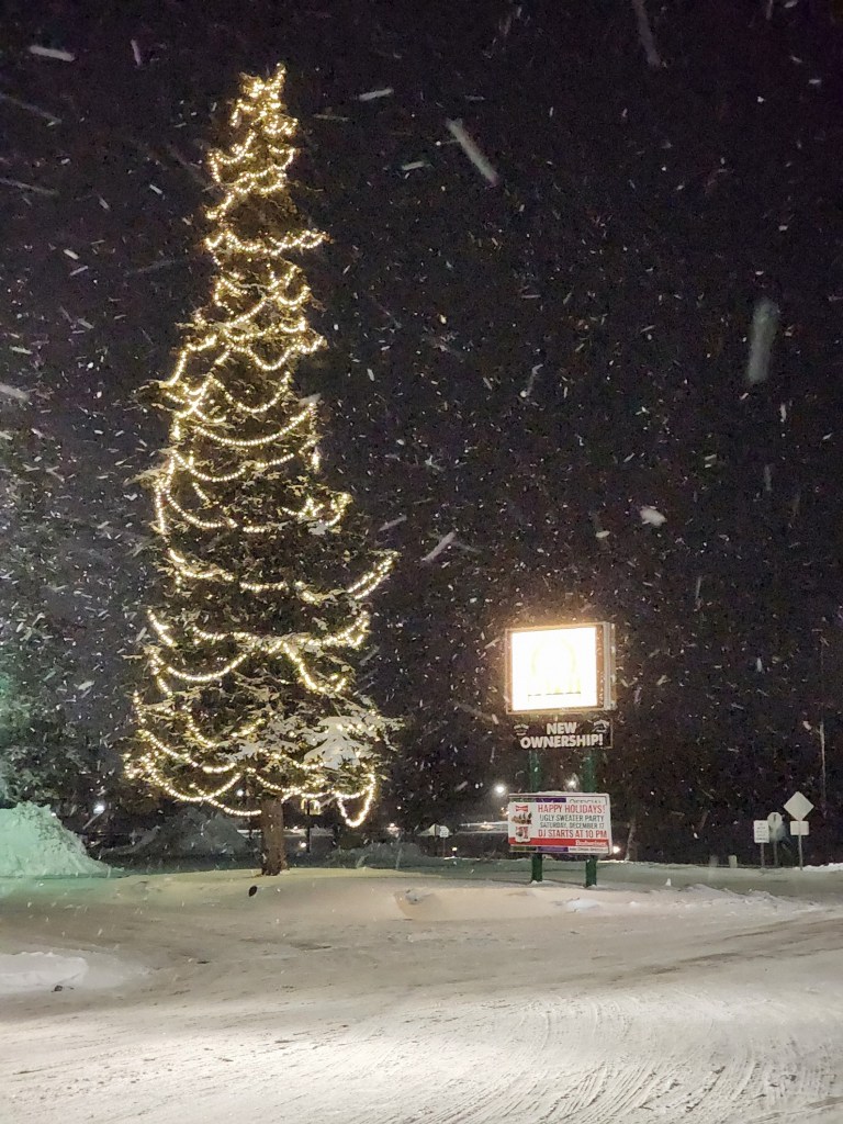 Lights from across the bay twinkled in the night and Christmas carols played softly in the background. She wished for snow to fall to add to the season. ~ Sharon Brubaker