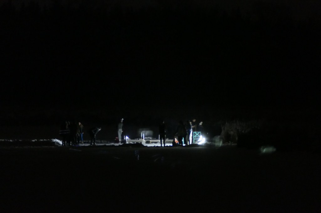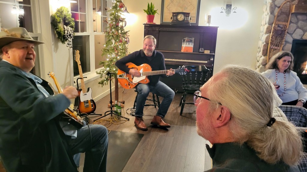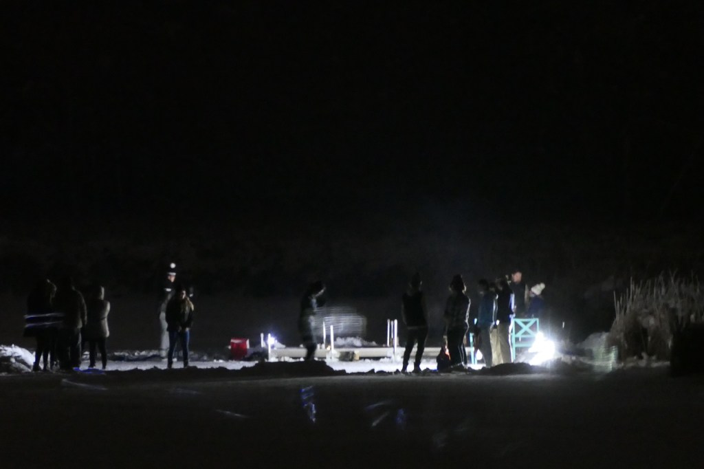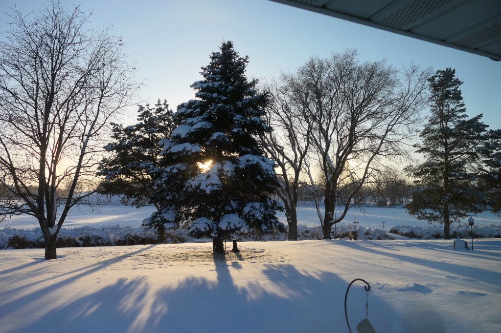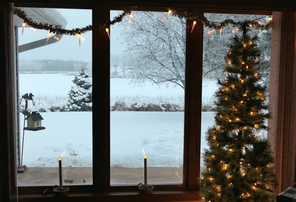 [Why yes, we did go to a holiday party last night. Of course, not until midnight – 8:30 was late enough. When we got home the neighbors across the lake were partying on the ice . . . ]