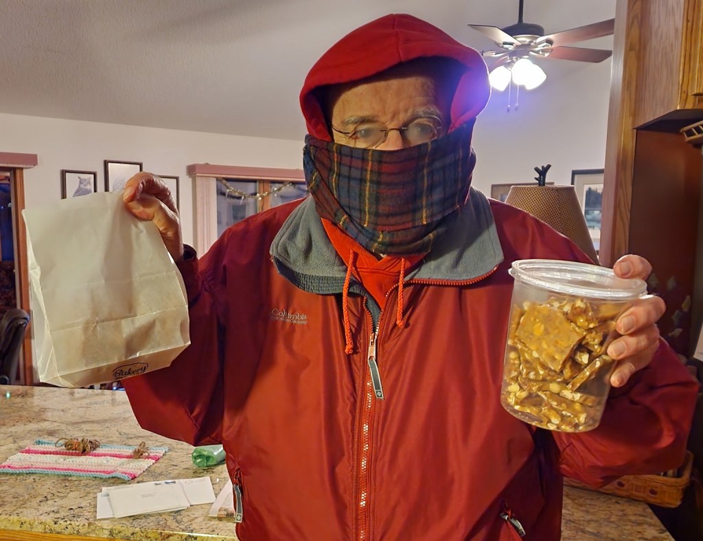 [Air temp: minus 12; windchill: minus 35. Still the Saturday morning doughnut and peanut brittle run continued unabated!]