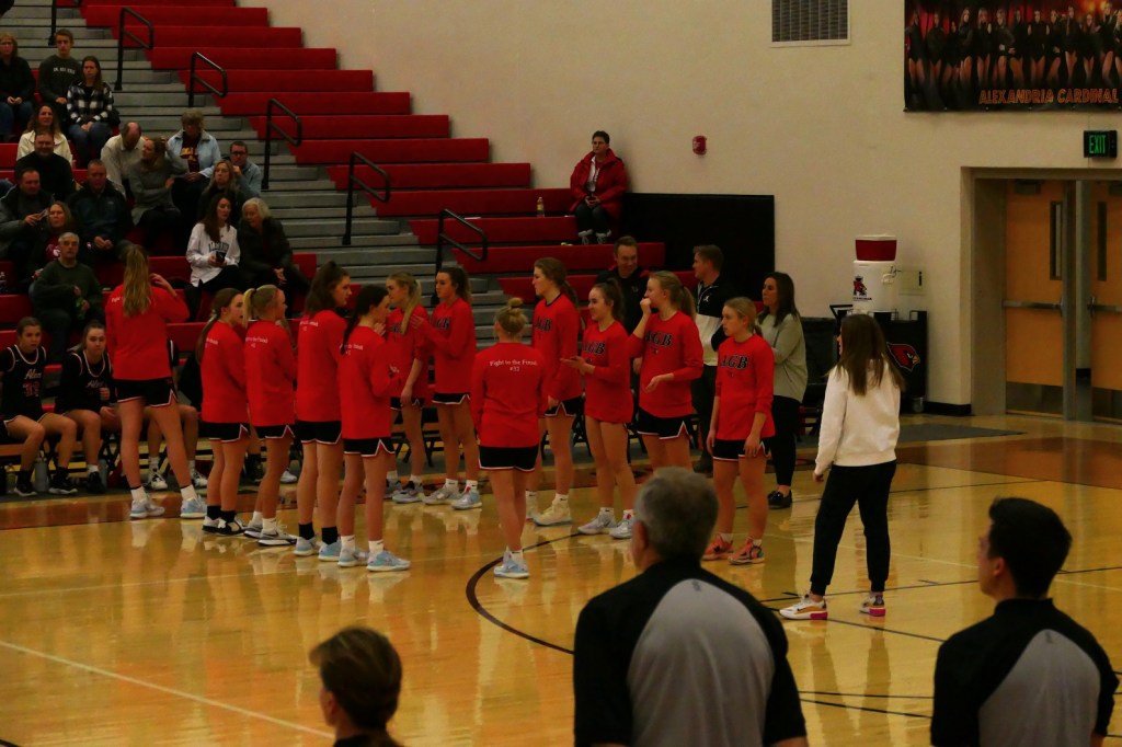 [I watched enough streamed games this year to recognize, from 1-r, Camree Miller, Hadley Thul, MaCee Linow, and Kate Hennessy – 3 sophomores and a freshman, which pretty defines the whole team . . . ]