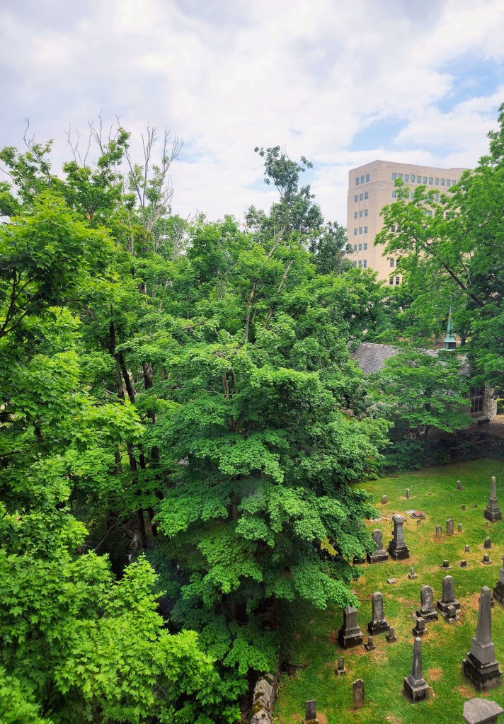 [The view from our hotel room in the Biddle Hotel & Conference Center on the IU campus . . . ]