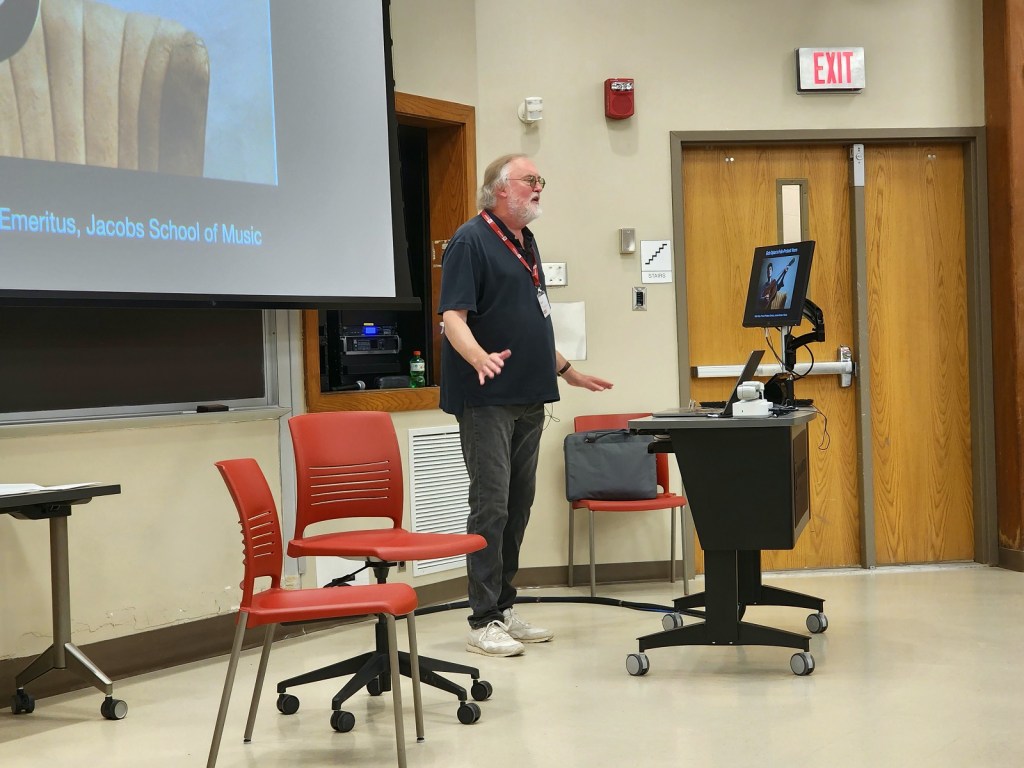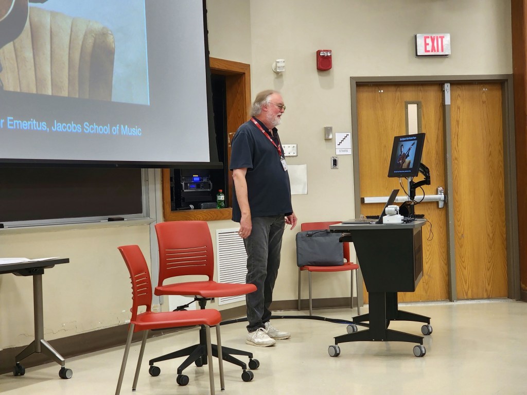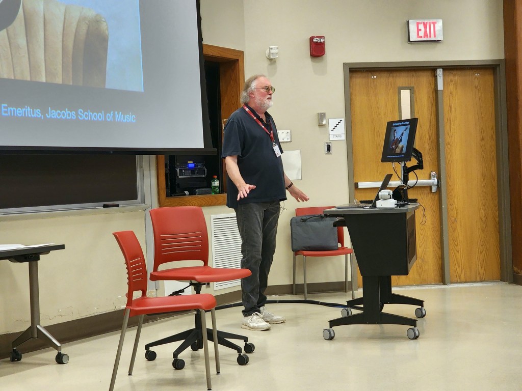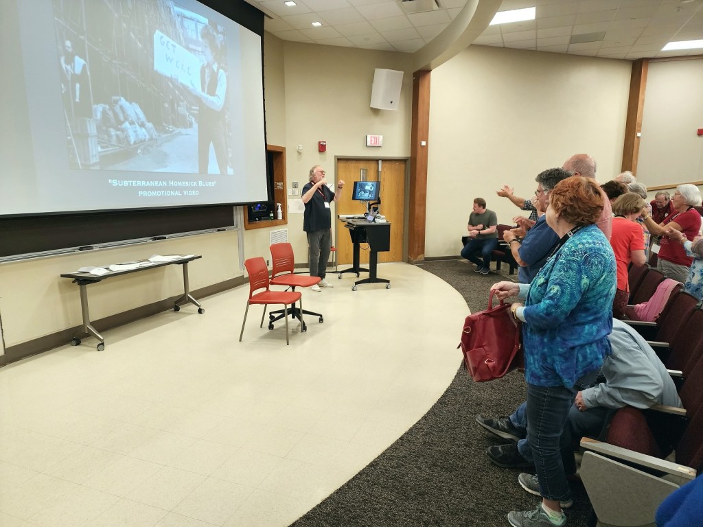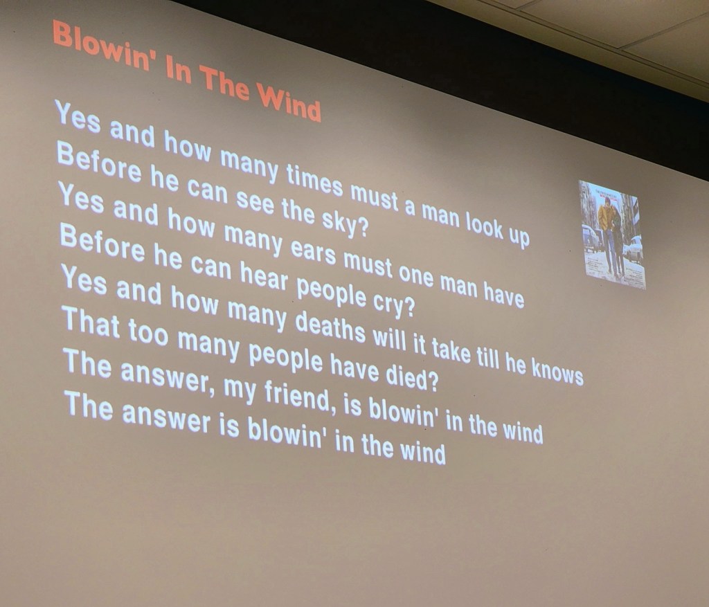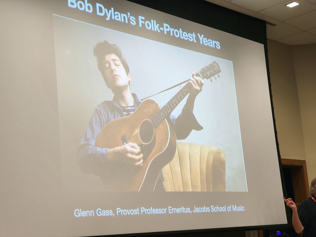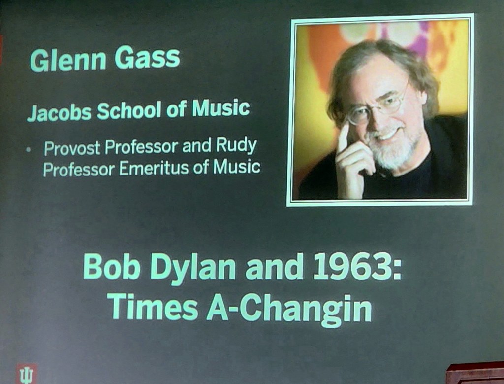 [Class No. 7 – our 4th college class of the day, we gave our teacher (a retired IU professor) a standing ovation for his 2-hour presentation on Bob Dylan . . . ]