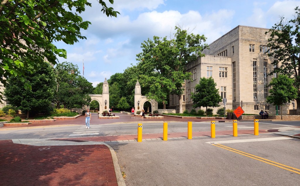[Students touring the campus. Here at the Sample Gates . . . ]