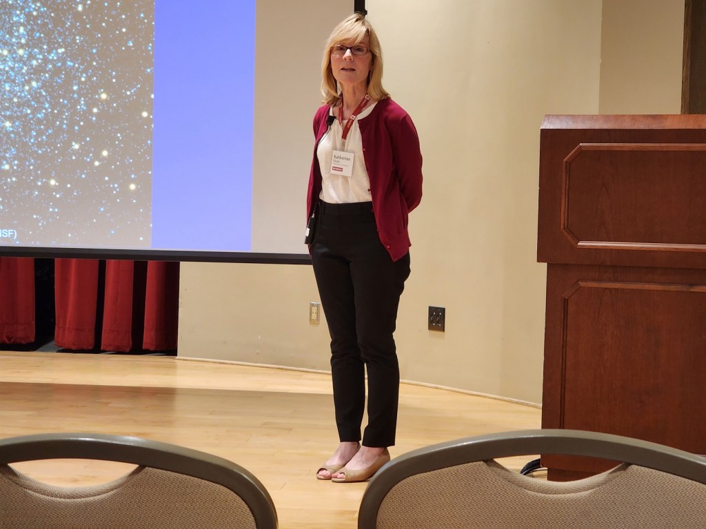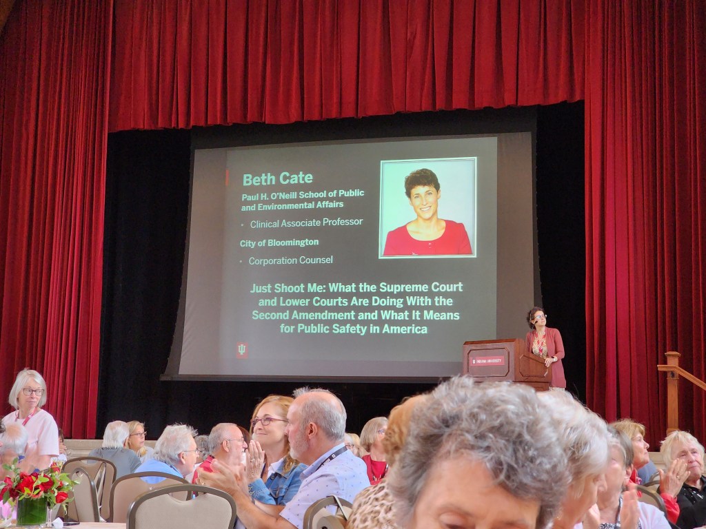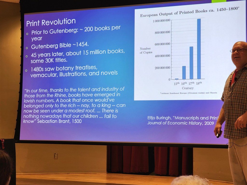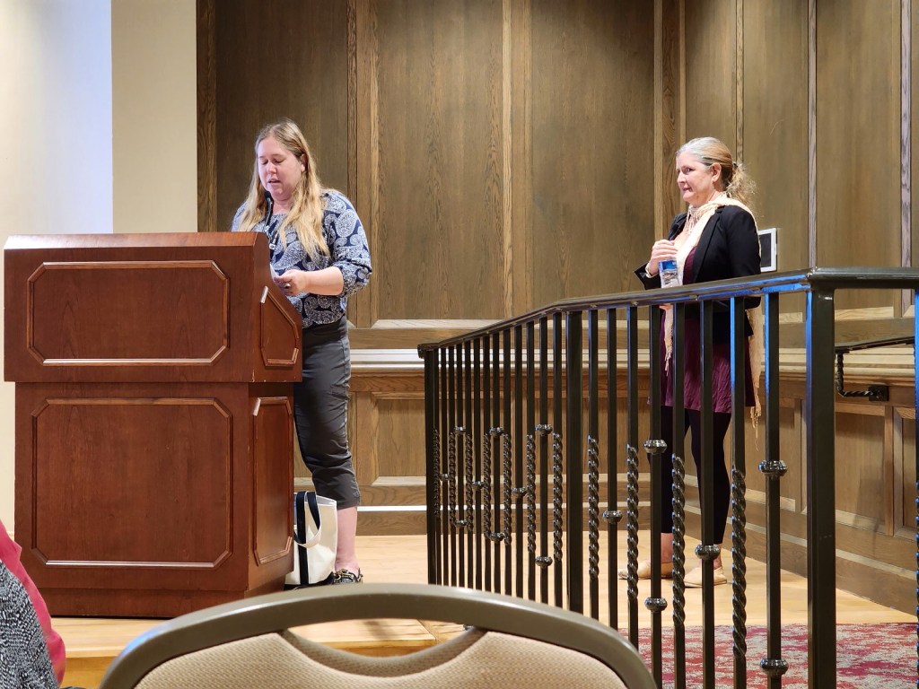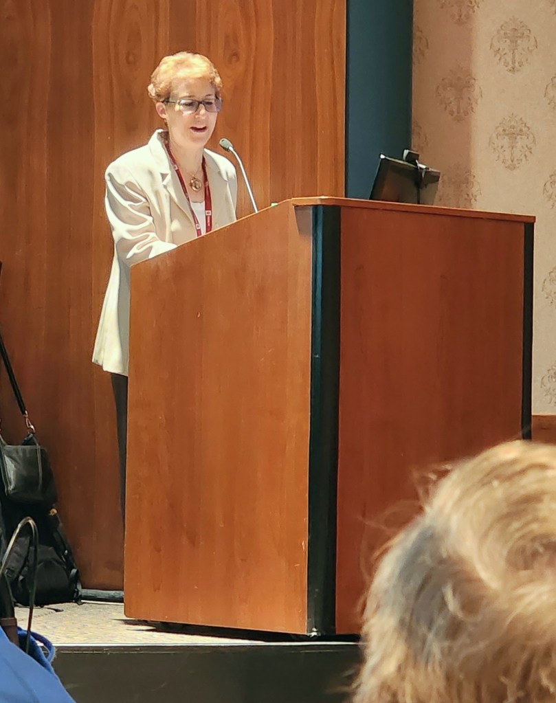 [I had a bad angle and bad lighting for photos. But I could hear her just fine. Each year we really look forward to the classes from Professors Hershey and Cate . . . ]