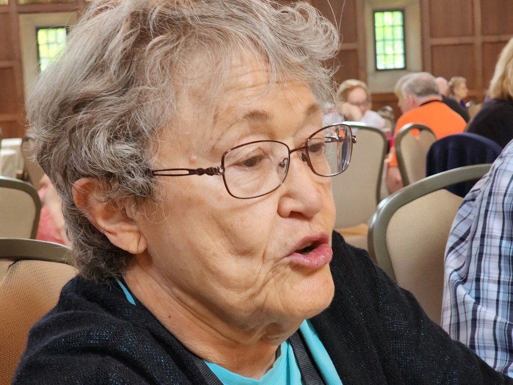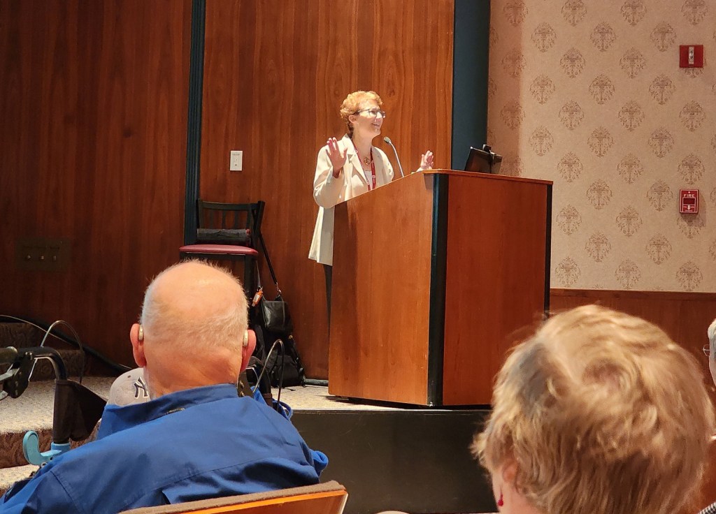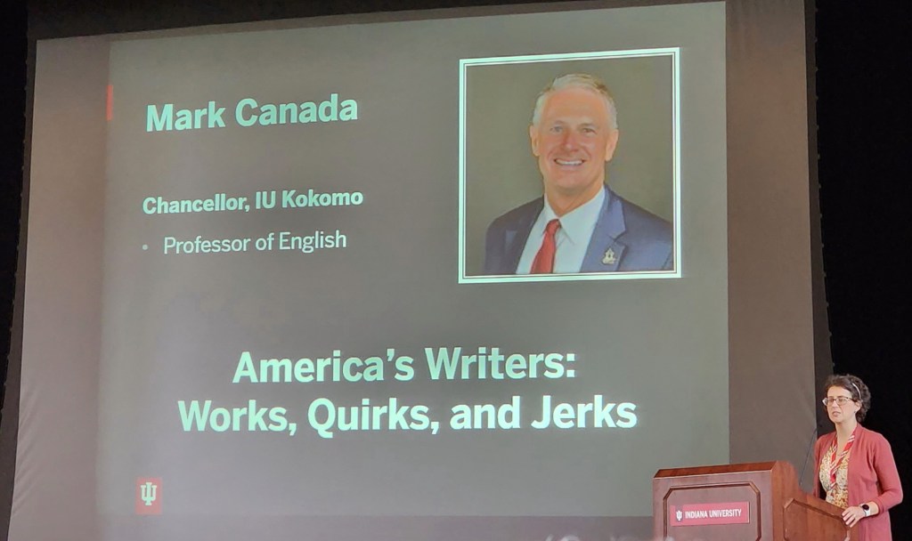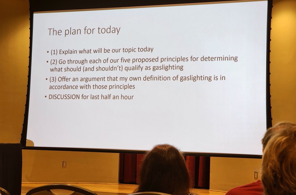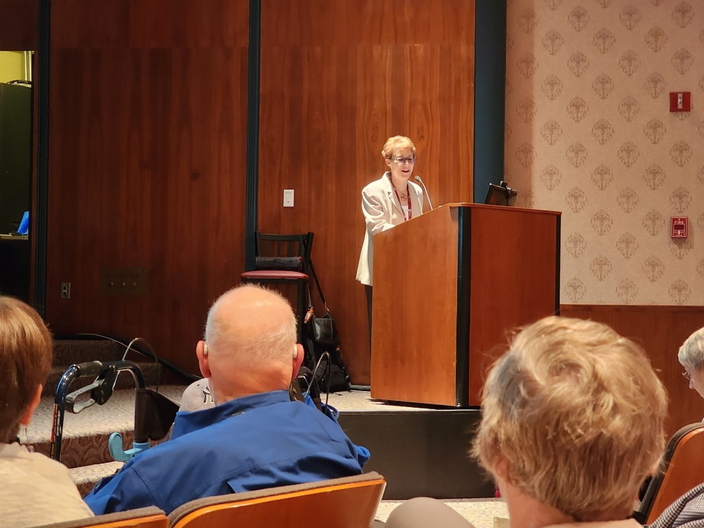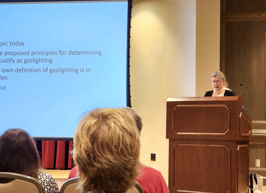 [I had a bad angle and bad lighting for photos. But I could hear her just fine. Each year we really look forward to the classes from Professors Hershey and Cate . . . ]