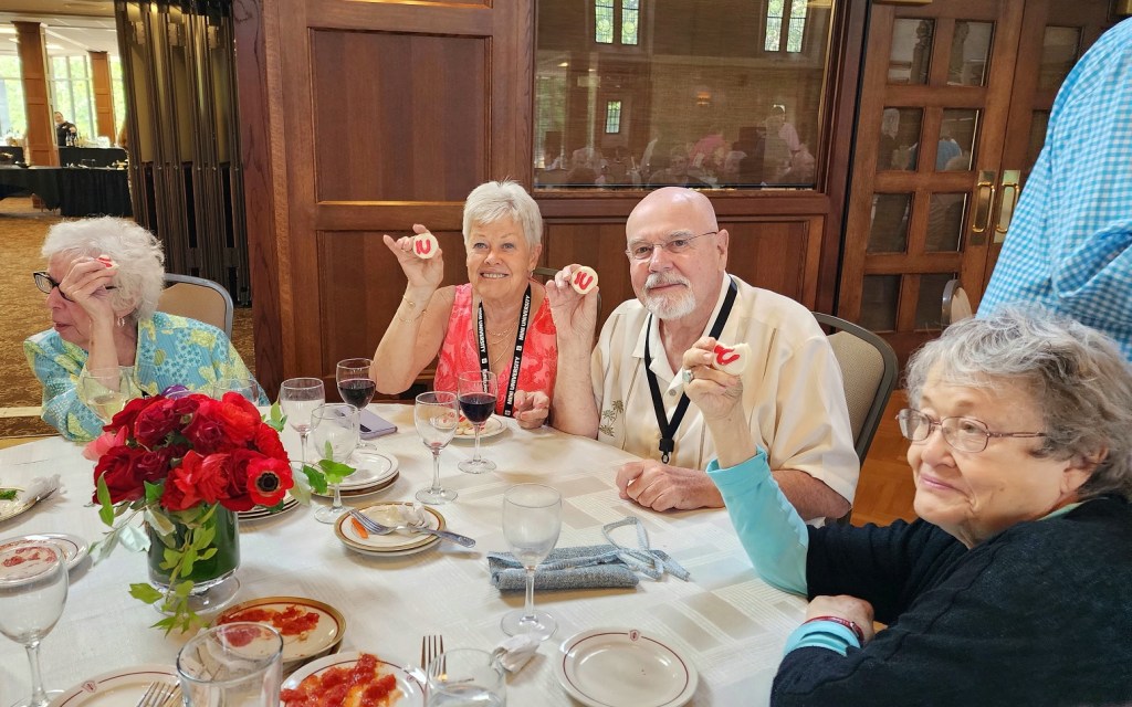 [Undergrads showing off their ‘IU’ cookies at the faculty reception . . . ]