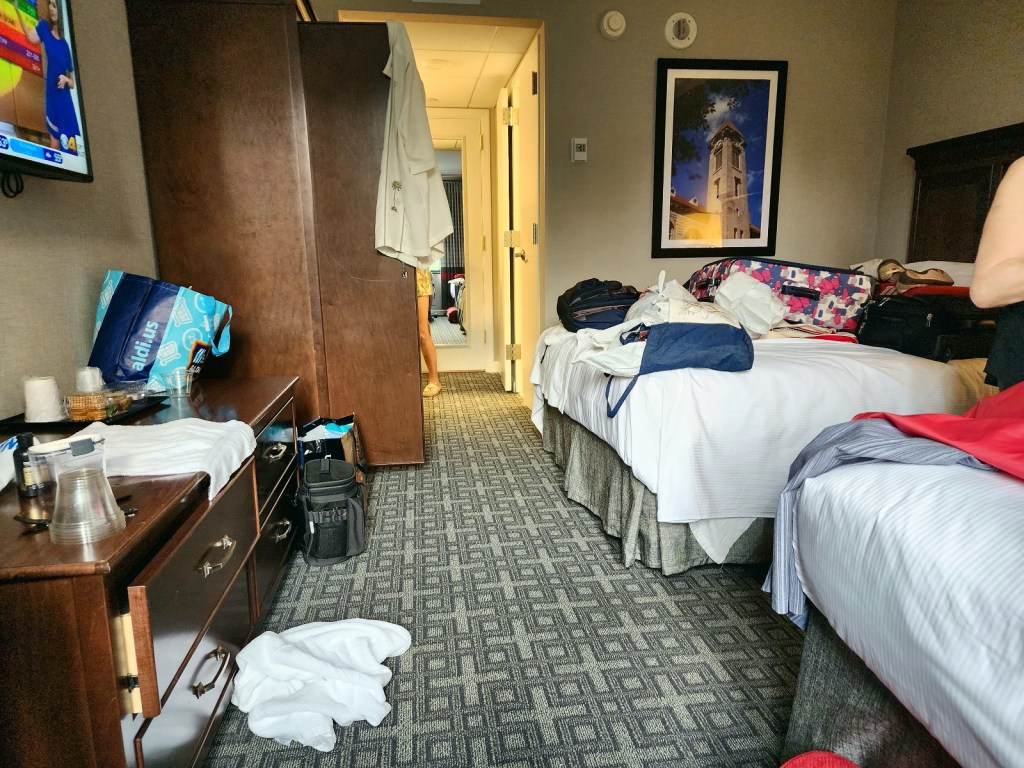 [The shared hotel room of the three of us packing up after graduation . . . ]