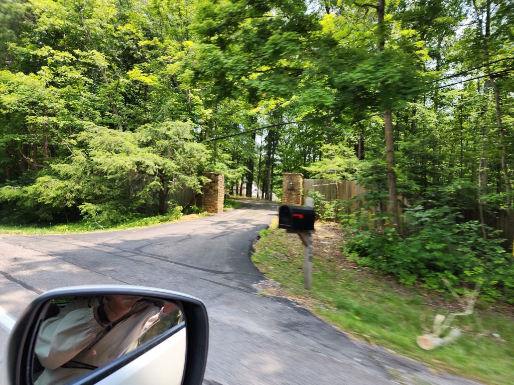 [It’s hard to see the house, particularly if you’re driving by apace (and there are no shoulders for stopping) . . . ]